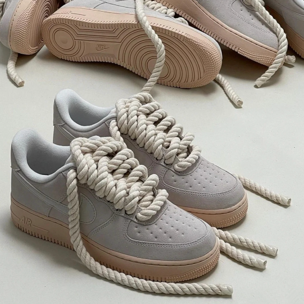 De longueur idéale pour s'adapter à tous types de chaussures, ces lacets unisexes offrent un ajustement parfait. Leur look contemporain et tendance, combiné à l'aspect original d'une grosse corde torsadée en couleur beige, fait de ces lacets un élément indispensable de votre collection d'accessoires streetwear pour personnaliser vos sneakers.
