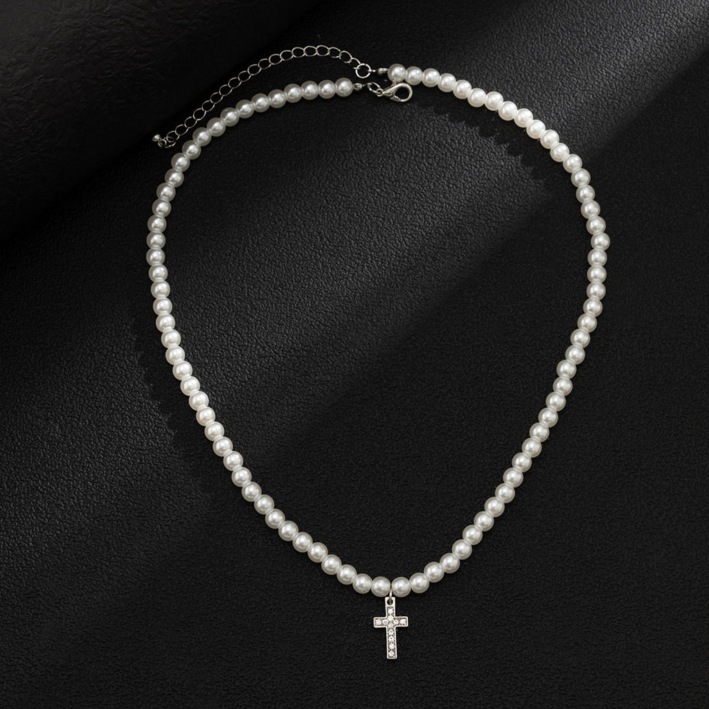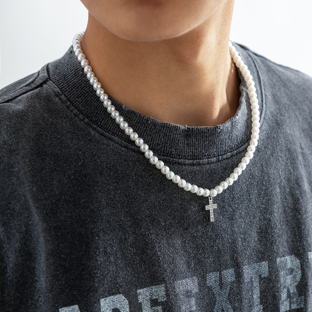 Avec sa longueur parfaitement adaptée à un port ras du cou, ce collier assure un ajustement optimal pour tous. Son style moderne et tendance, associé à l'éclat de perles simulées parfaitement rondes et d'un pendentif en forme de croix, fait de ce collier une addition essentielle à votre collection de bijoux streetwear.