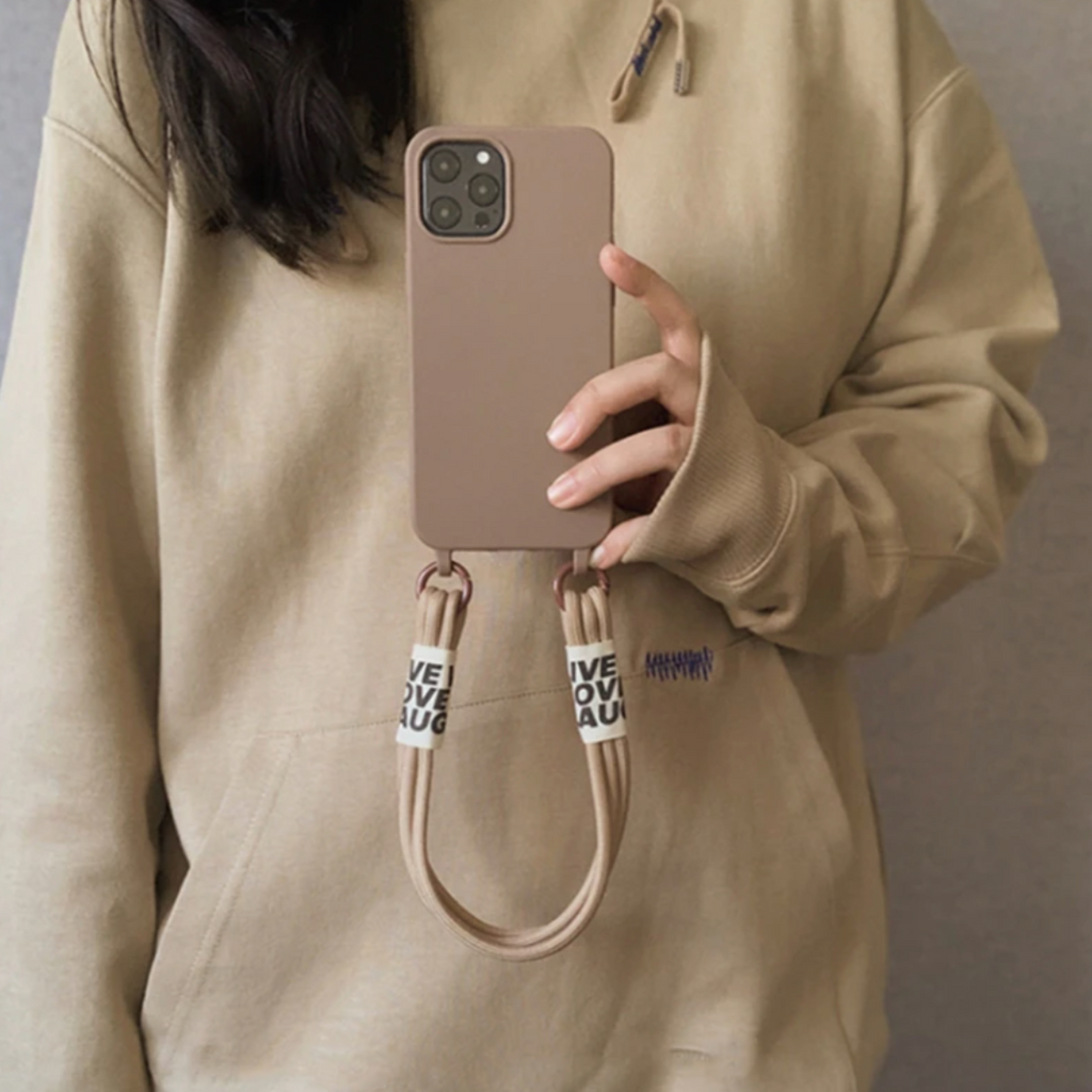 -Coque Silicone iPhone avec Cordon Bandoulière Collier 3 Fils.