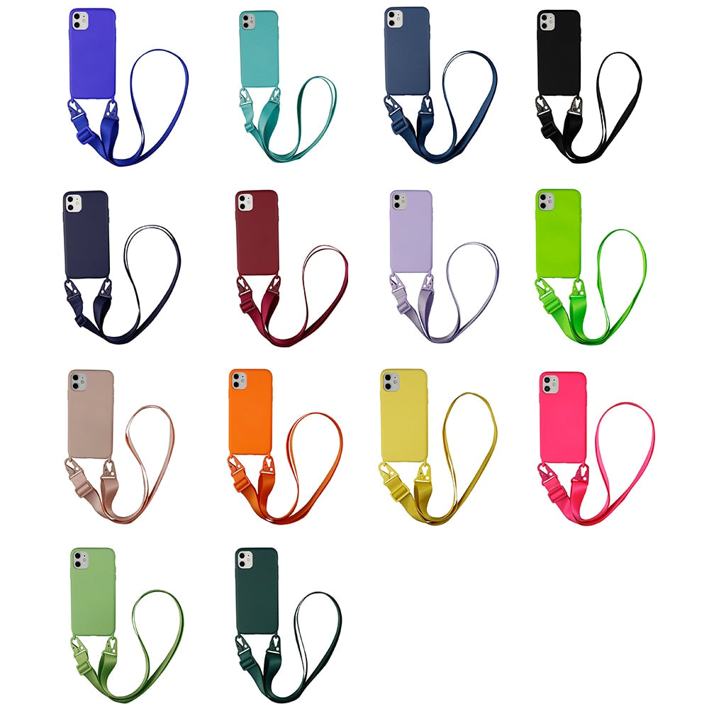 -Coque Silicone iPhone avec Cordon Bandoulière Collier.