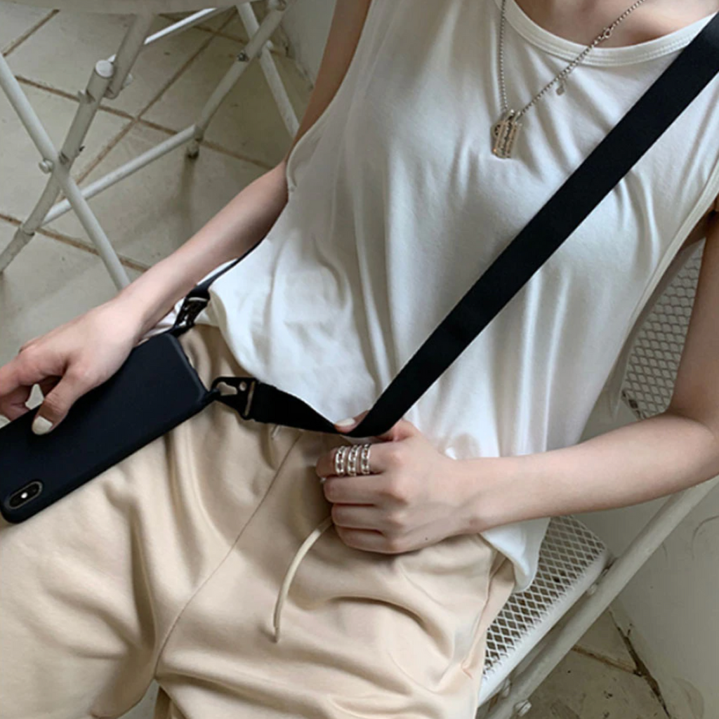 -Coque Silicone iPhone avec Cordon Bandoulière Collier.
