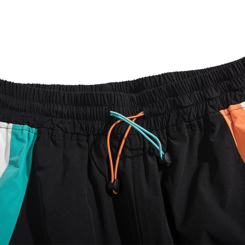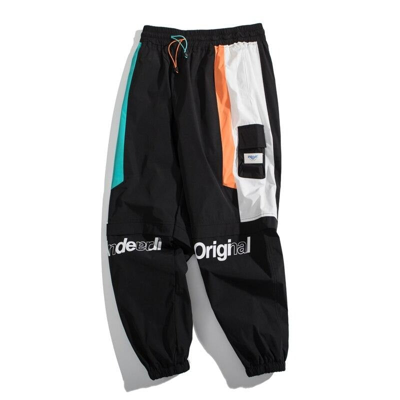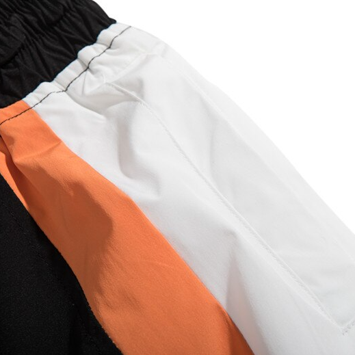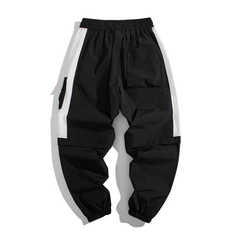 -Pantalon Cargo Noir Blanc Orange Streetwear Homme Femme