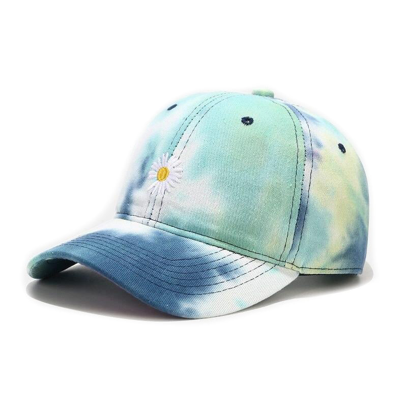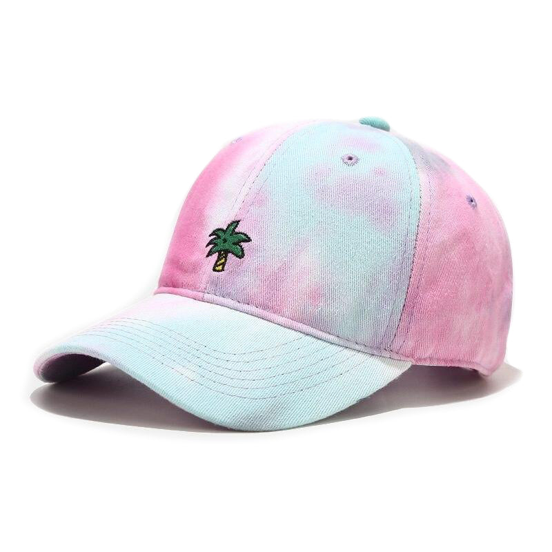 -Casquette Baseball Tie and dye rose orange Blanc Rouge Streetwear Brodée Fleurs