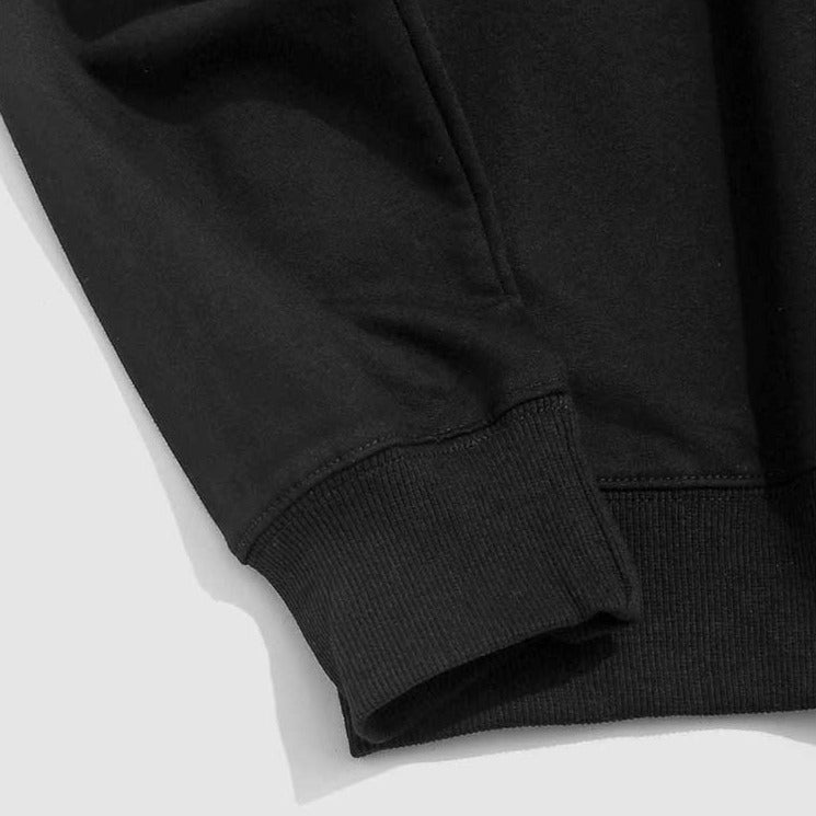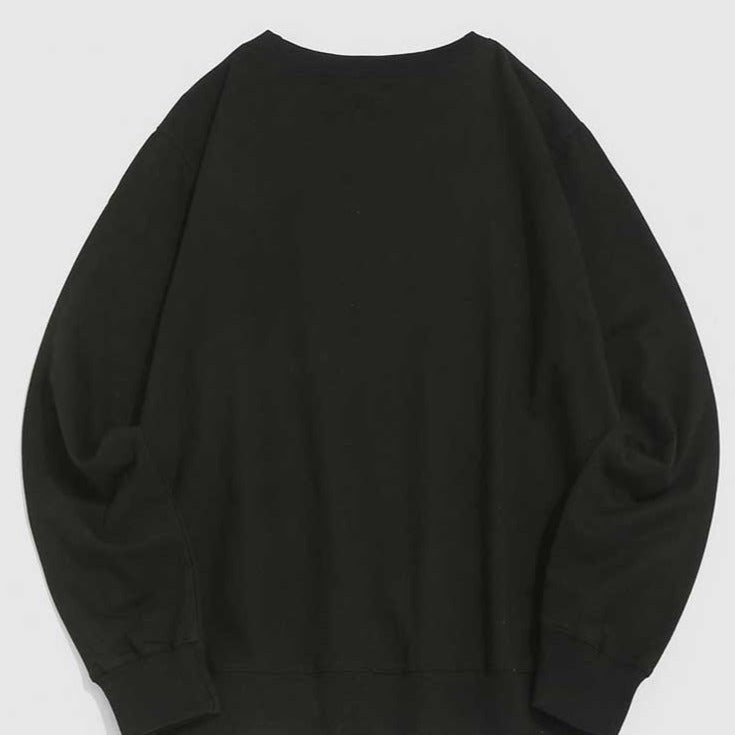 -Sweat-shirt T-shirt Manches longues Col rond Vintage Noir Streetwear