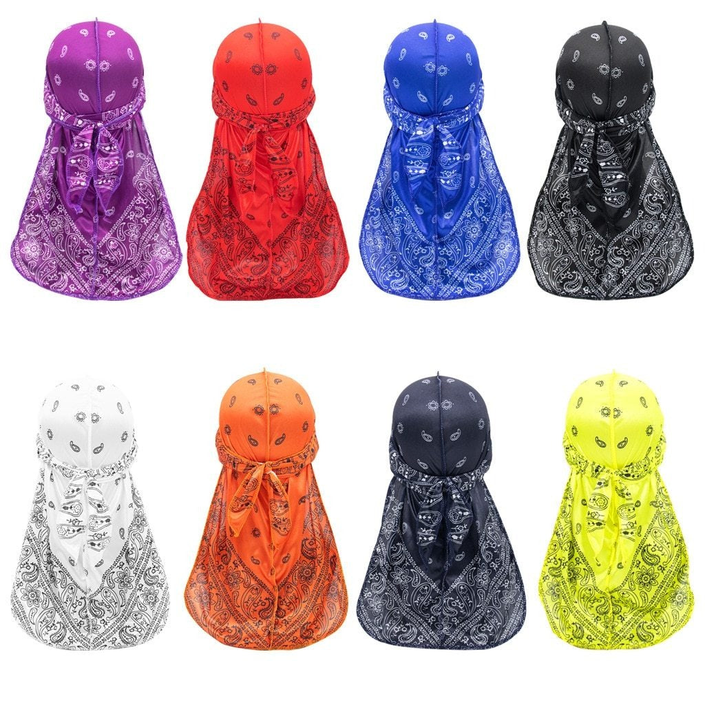 -Durag en Satin Bleu Foncé Imprimé Bandana pour Waves ou tresses