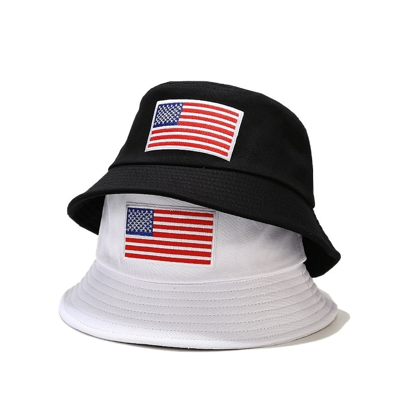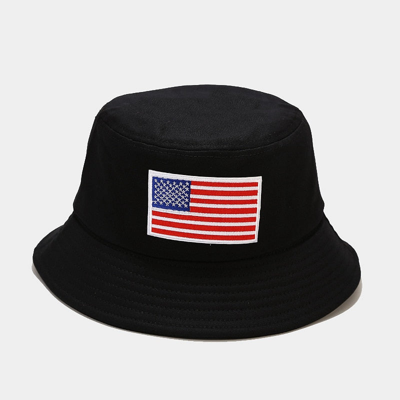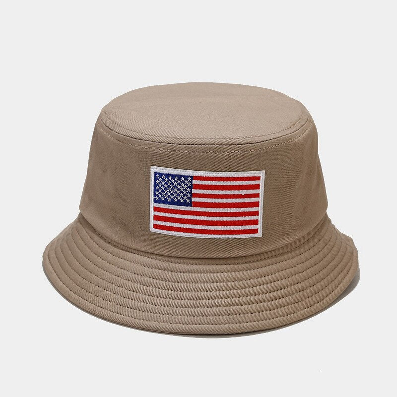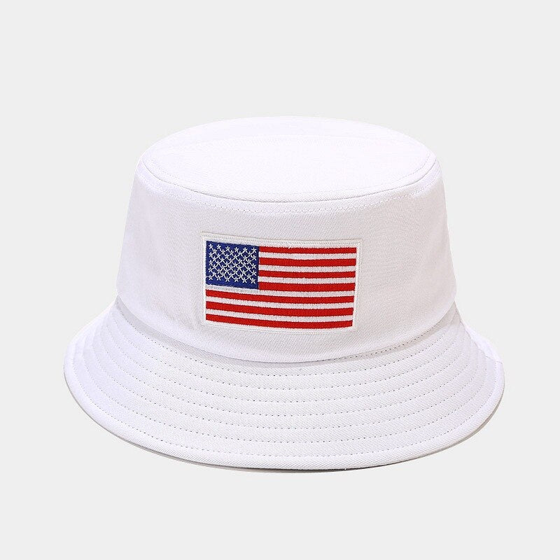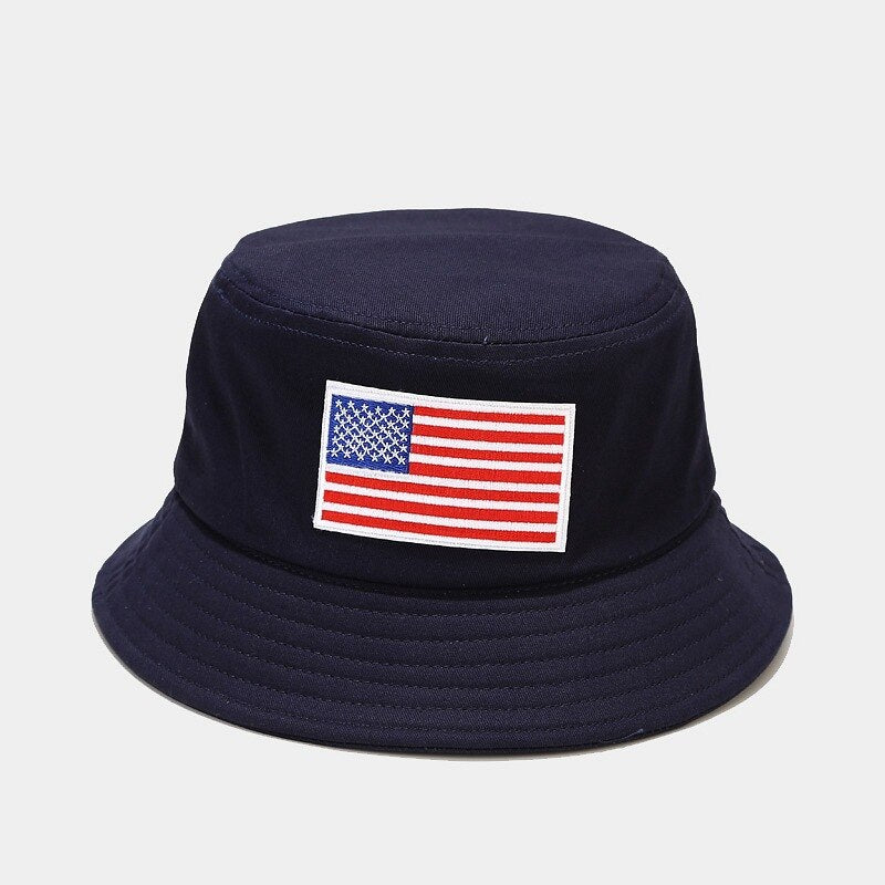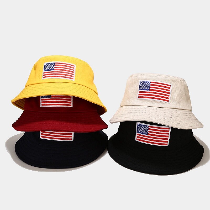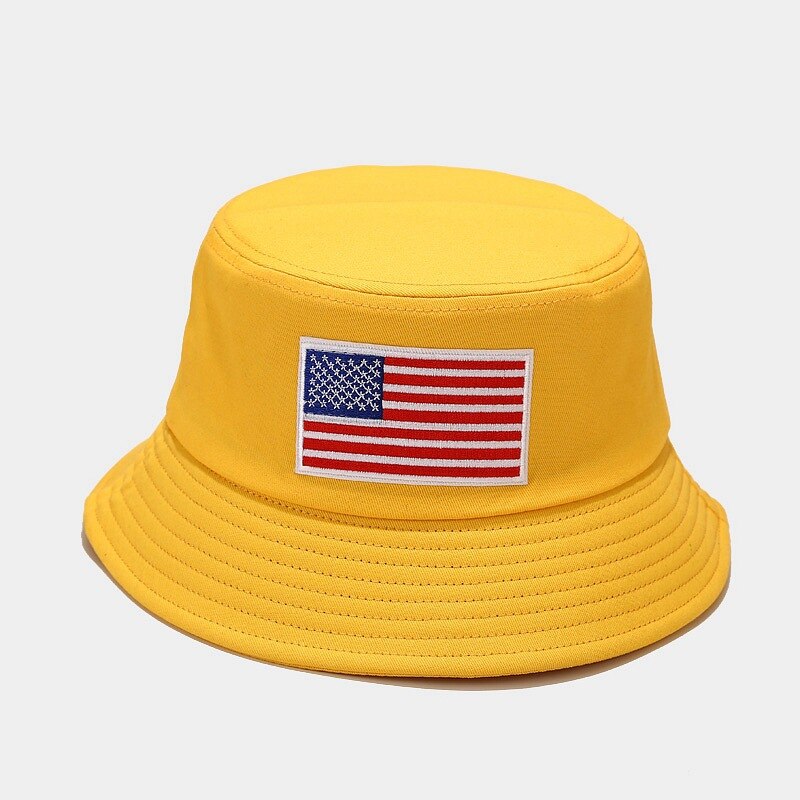 -Chapeau Bob Noir Jaune, Beige, Blanc, Blanc cassé, Bleu Marine, Brodé Drapeau des Etats-unis Streetwear