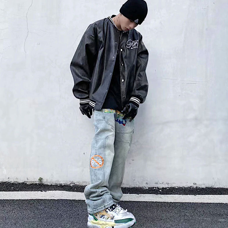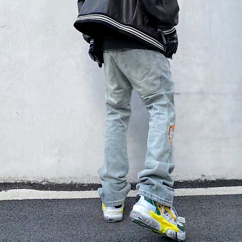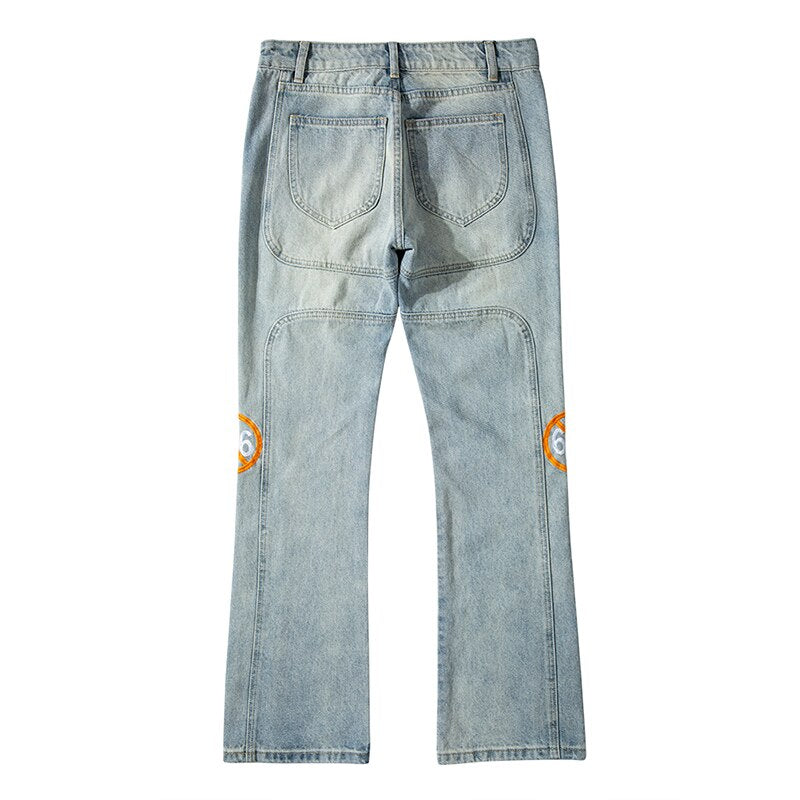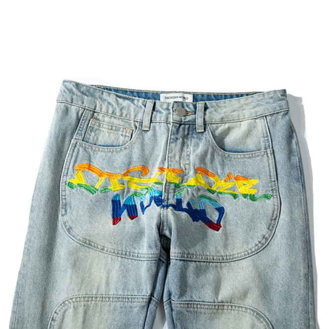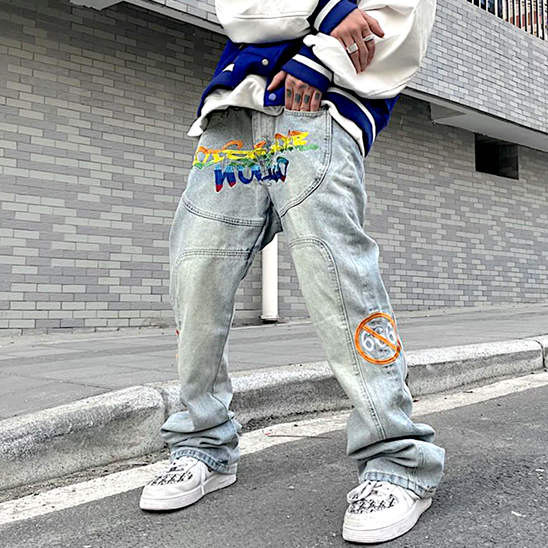 "606" Jean Large Coupe Droite Brodé Bleu Streetwear - URB1™