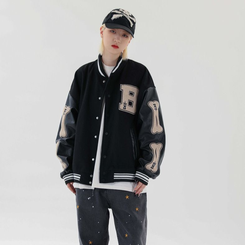 -Veste Universitaire Bombers Baseball Versity Jacket Brodée Streetwear