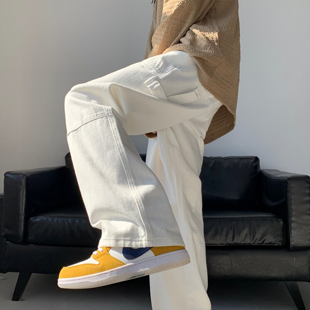 -Pantalon Jean Droit Denim Large Noir Streetwear.