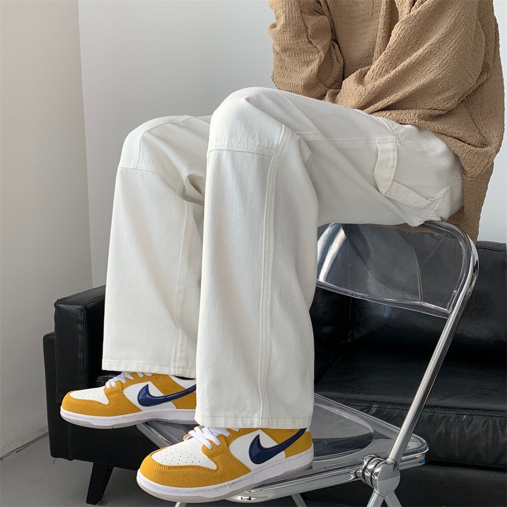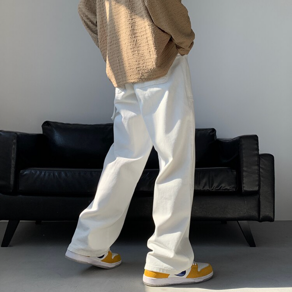 -Pantalon Jean Droit Denim Large Noir Streetwear.