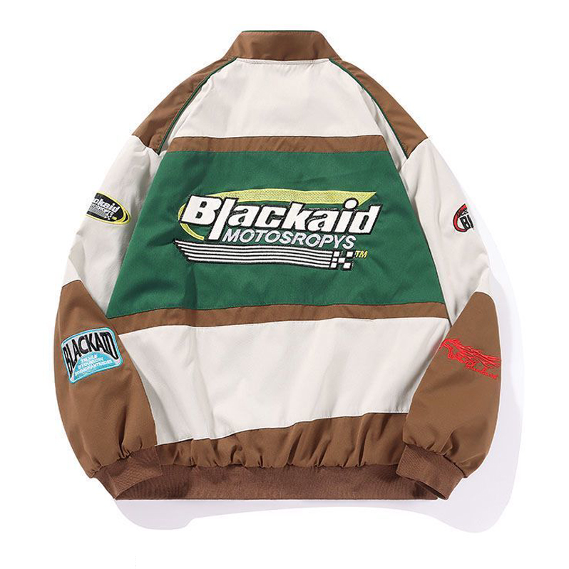 "BLACKAID" Veste Bombers Moto Brodé Bleu Streetwear - URB1™