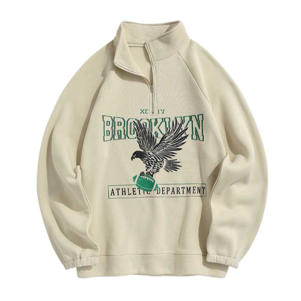 "BROOKLYN" Sweat-shirt Hoodie Col Camionneur Zipé Brodé - URB1™