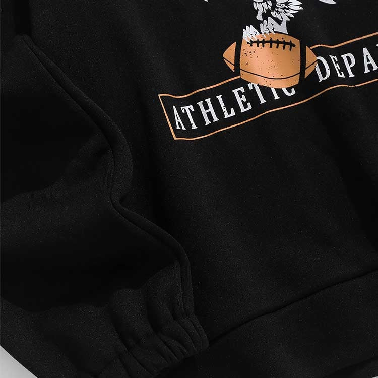 -Sweat-shirt Hoodie Large Oversize Vintage Imprimé Noir