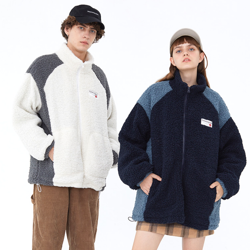 -Pull Gilet à Zip Fourrure mouton Noir Bleu Molletonné Oversize Streetwear