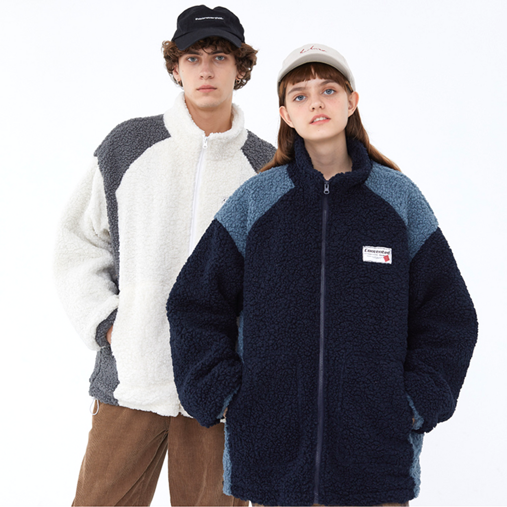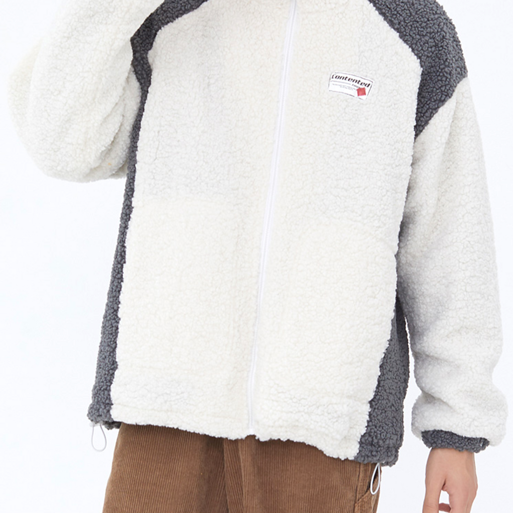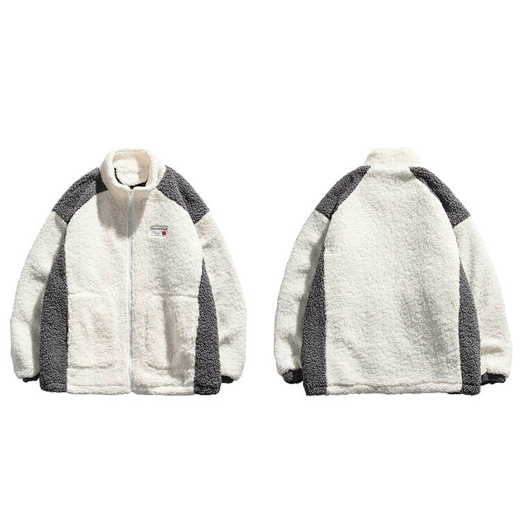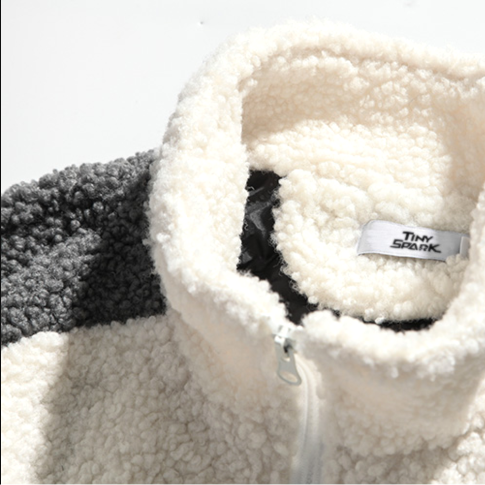 -Pull Gilet à Zip Fourrure mouton Noir Bleu Molletonné Oversize Streetwear