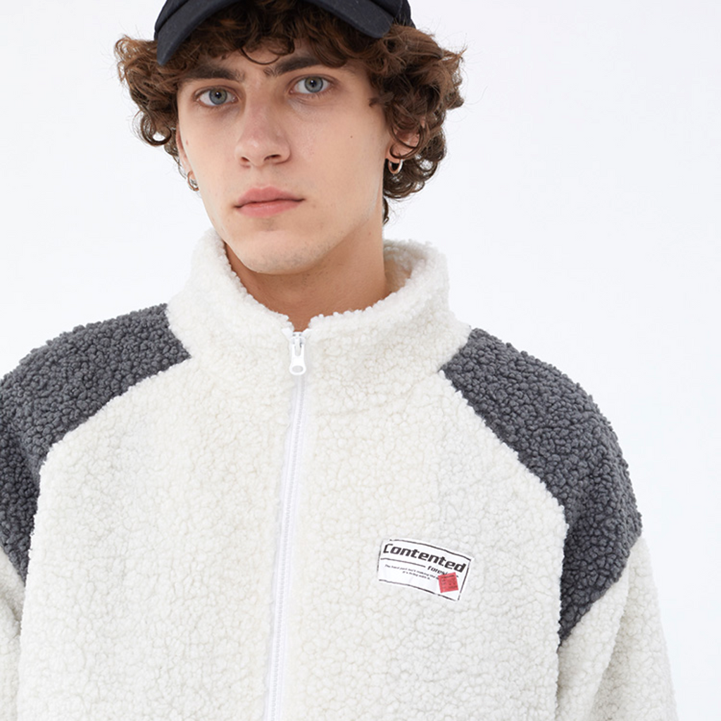 "CONTENTED" Pull Gilet à Zip Fourrure mouton Noir - URB1™