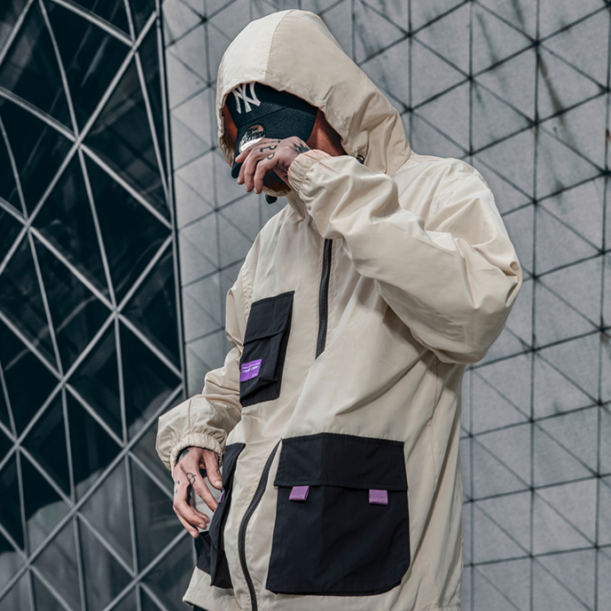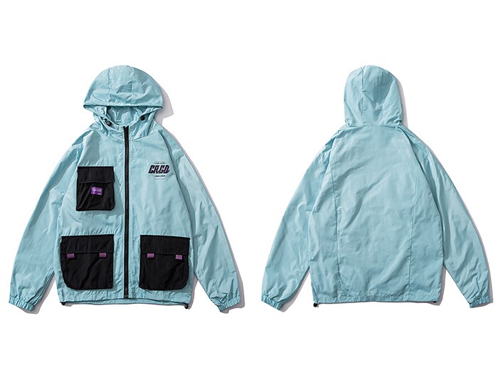 -Blouson Veste coupe vent Bleu streetwear à Capuche