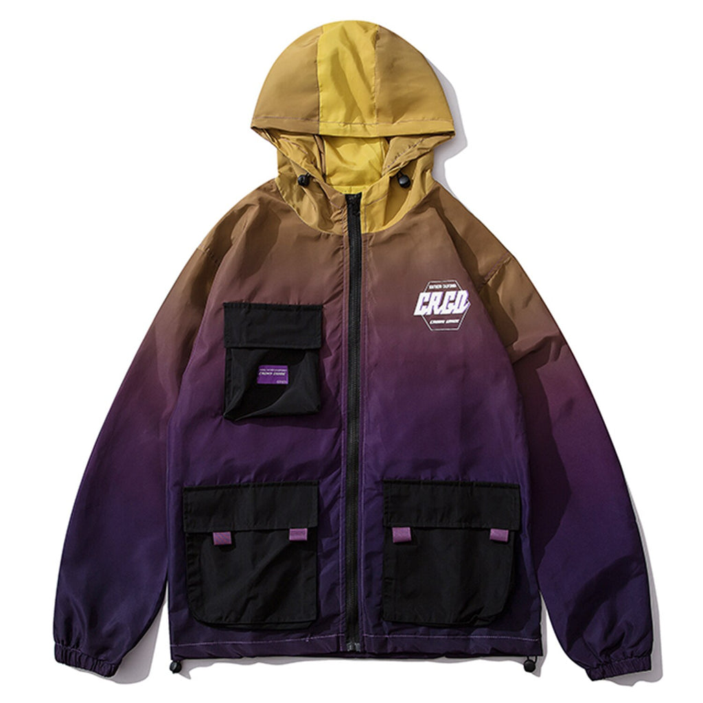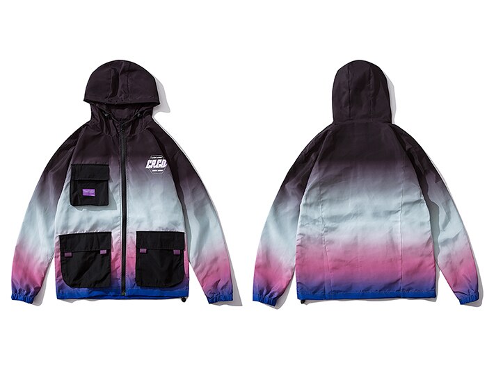 -Blouson Veste coupe vent Noir Blanc Rose Violet streetwear à Capuche