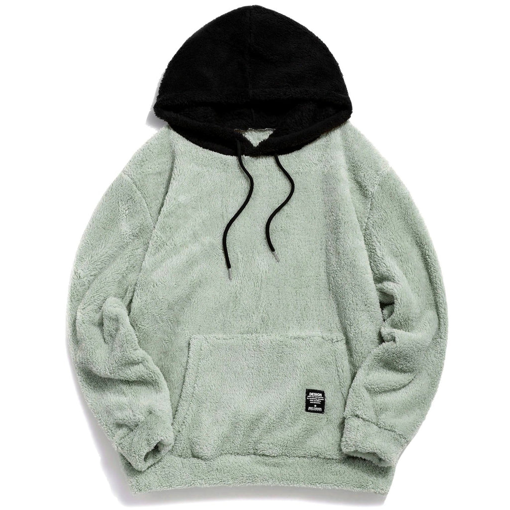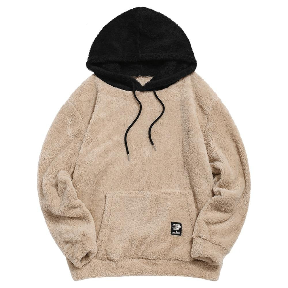 -Sweat-shirt Vert Beige Hoodie à capuche Molletonné, Fourrure Oversize Streetwear