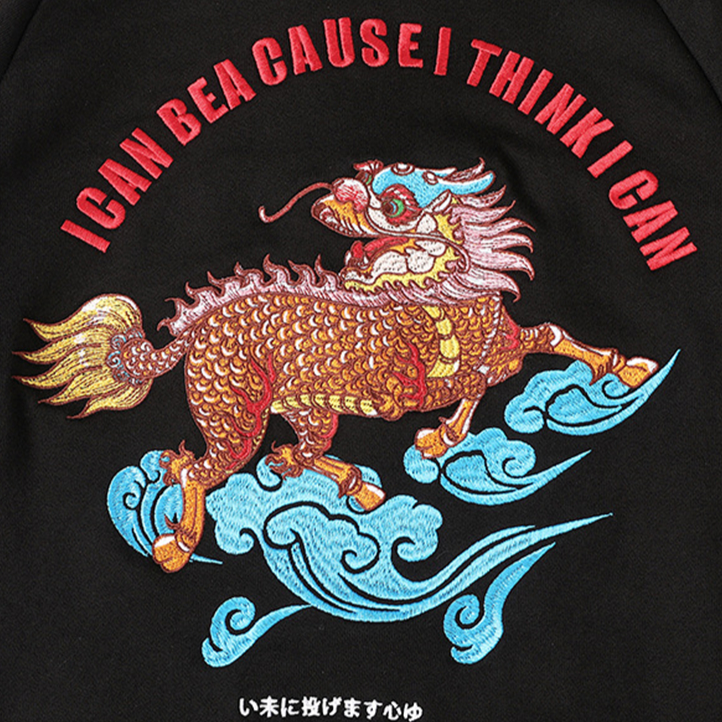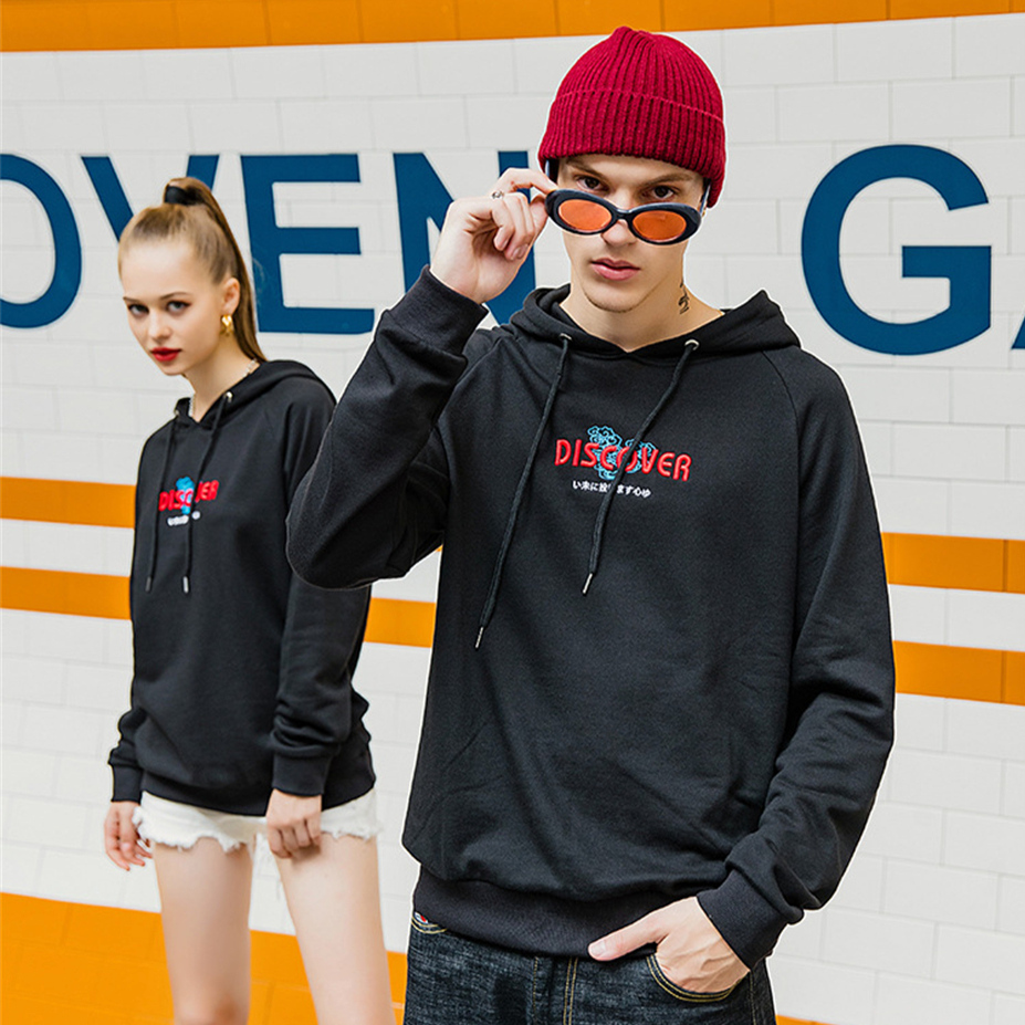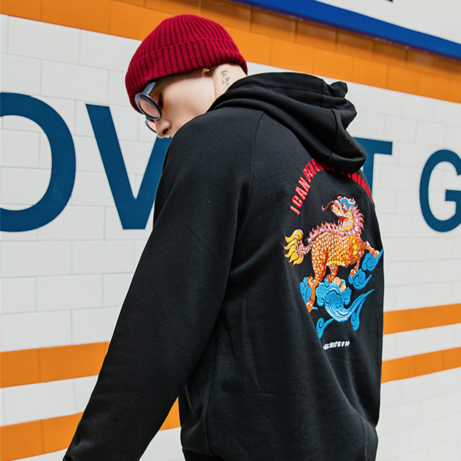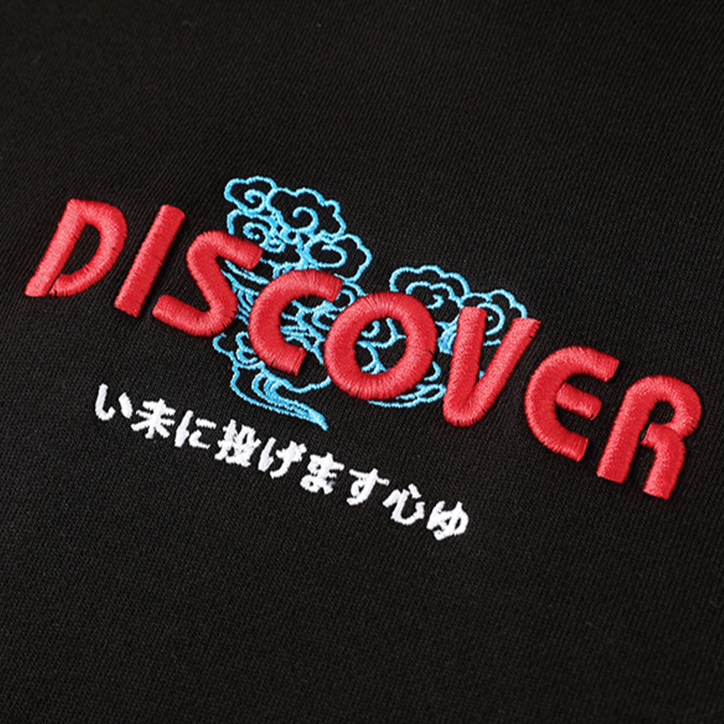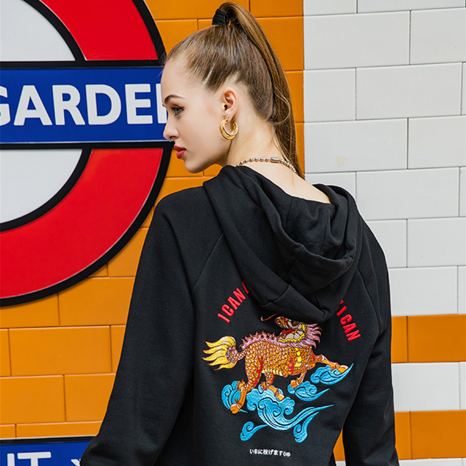 -Sweatshirt Hoodie à capuche Brodé Japon Streetwear Noir