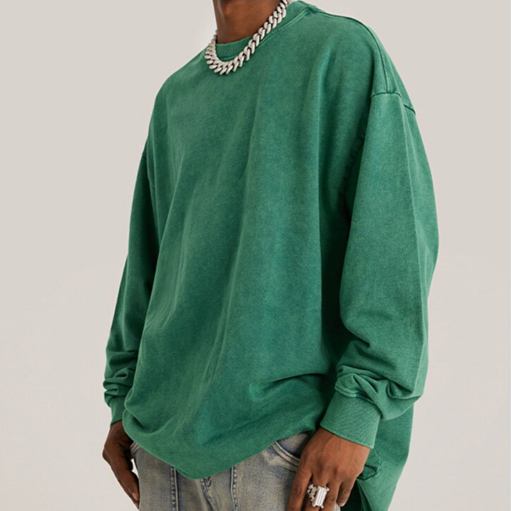 -T-shirt Manches longues Molletonné Délavé Rose