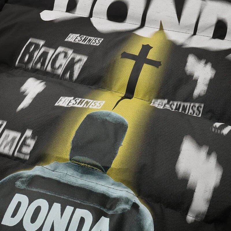 -Parka Doudoune Matelassée Imprimé Motifs Inspiré Kanye West Streetwear