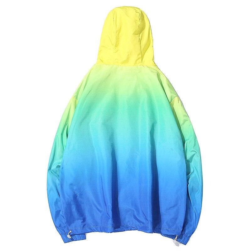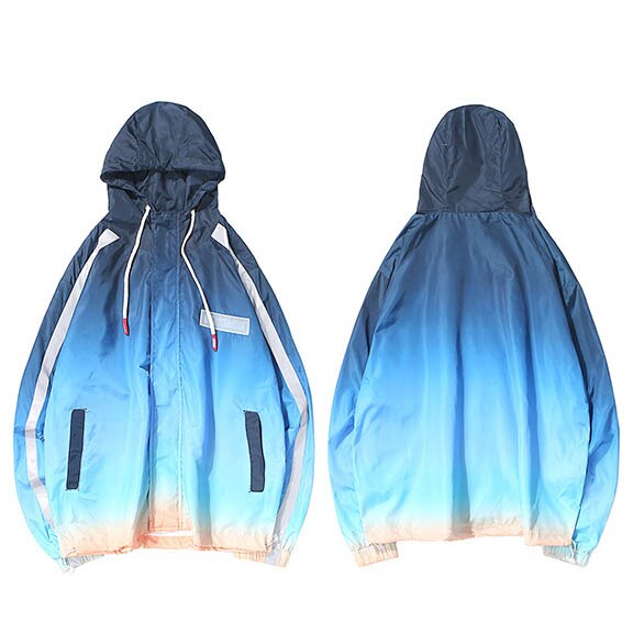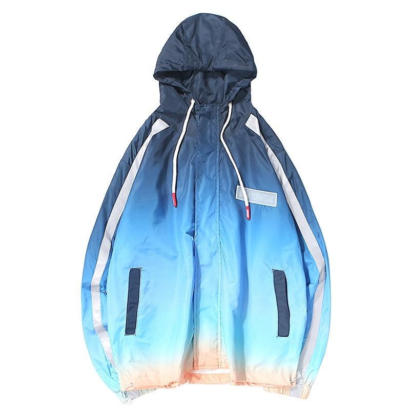 -Blouson Veste coupe vent Bleu streetwear à Capuche
