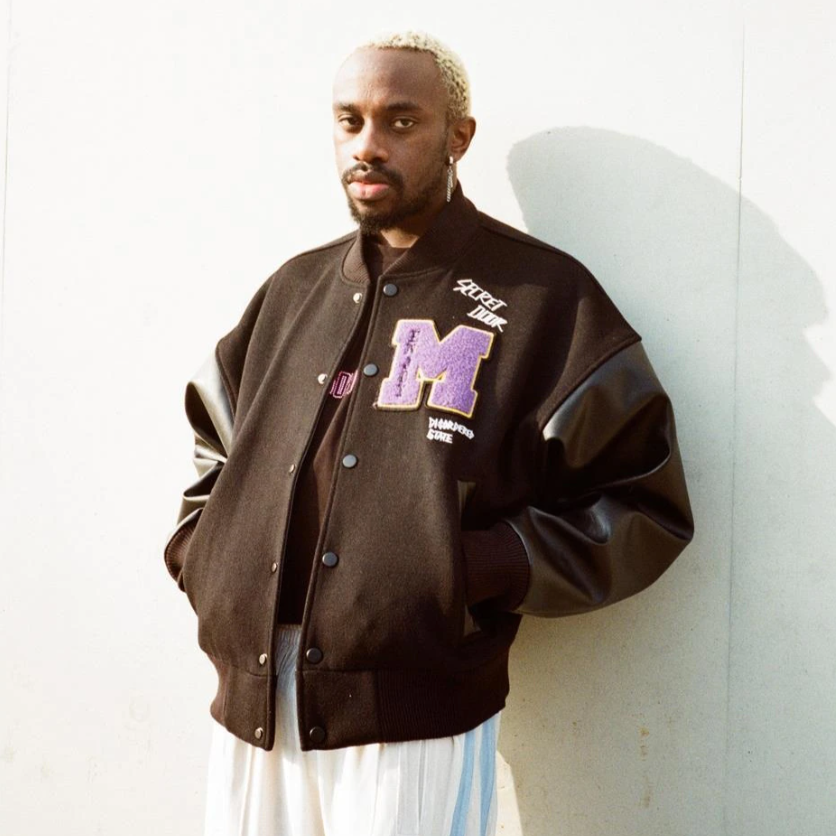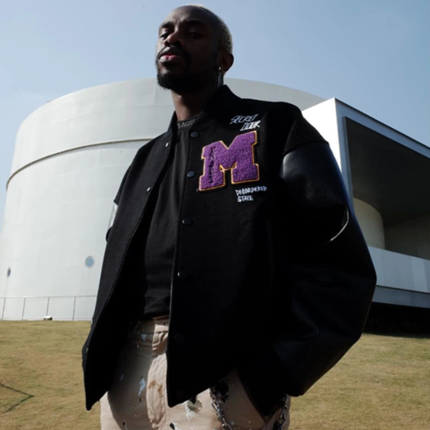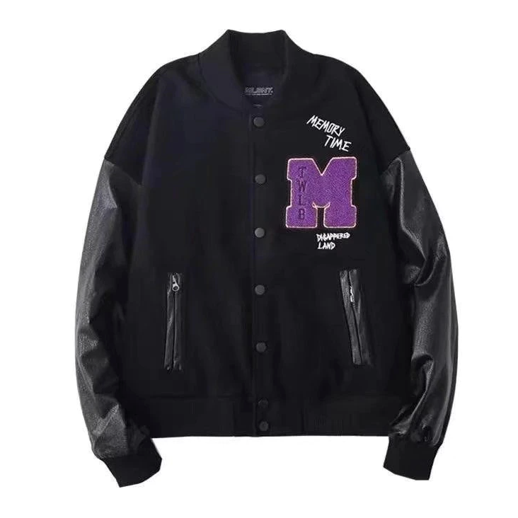 -Veste Universitaire Letterman Versity Jacket Bombers Imitation Cuir et laine bouillie Brodée Streetwear