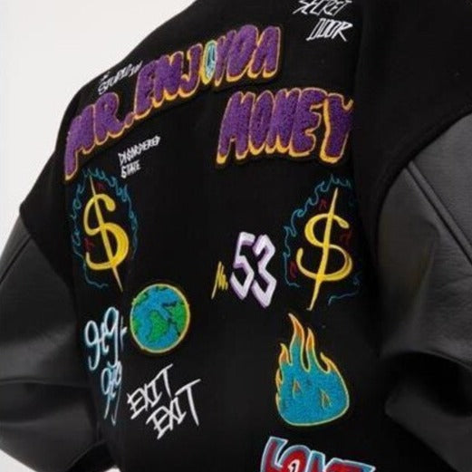 "ENJOYDA" VESTE BOMBERS BASEBALL VERSITY JACKET NOIR - URB1™
