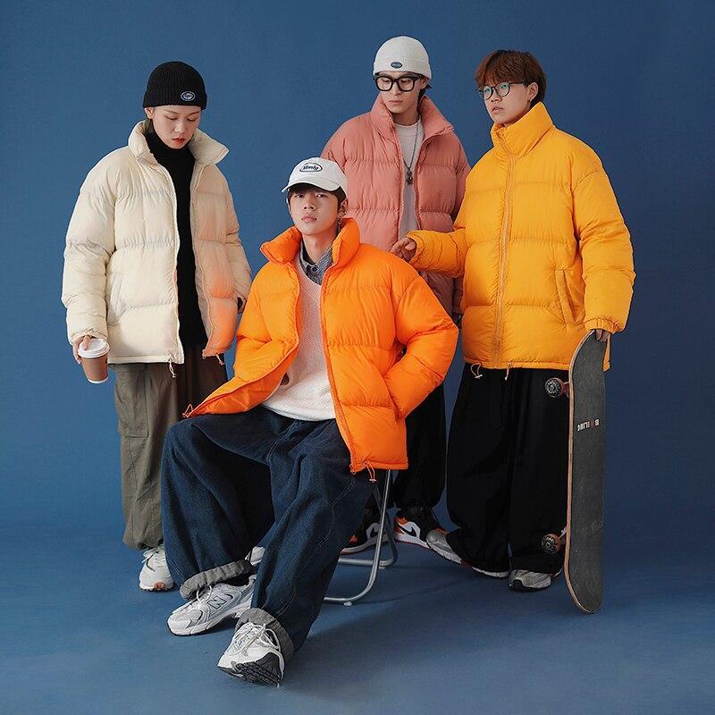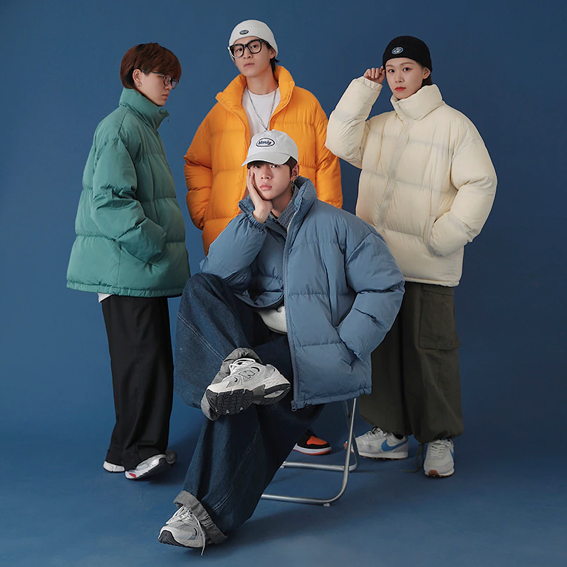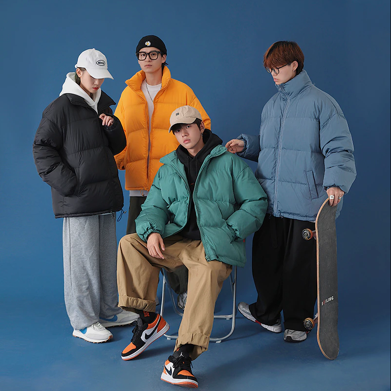 -Parka Doudoune Matelassée de couleur Bleu Uni Streetwear