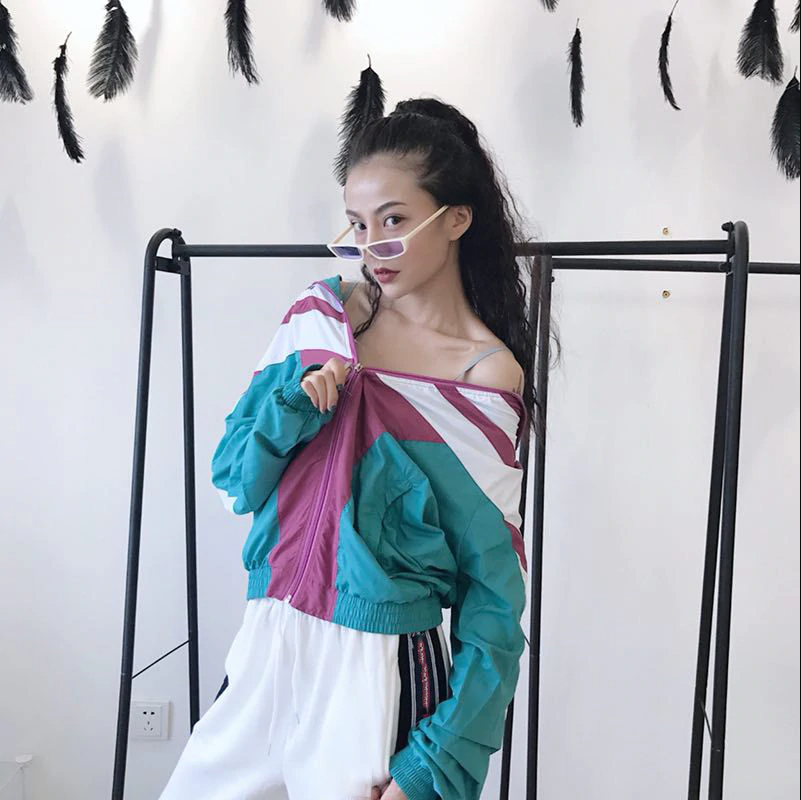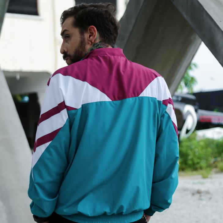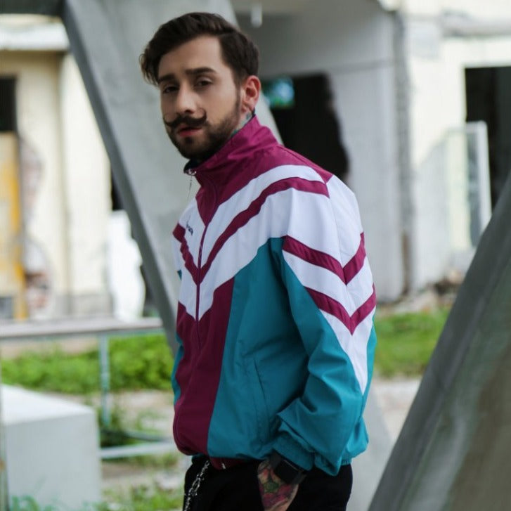 -Veste Bombers sport coupe vent retro Vert, Turquoise, Rouge Bordeaux, blanc