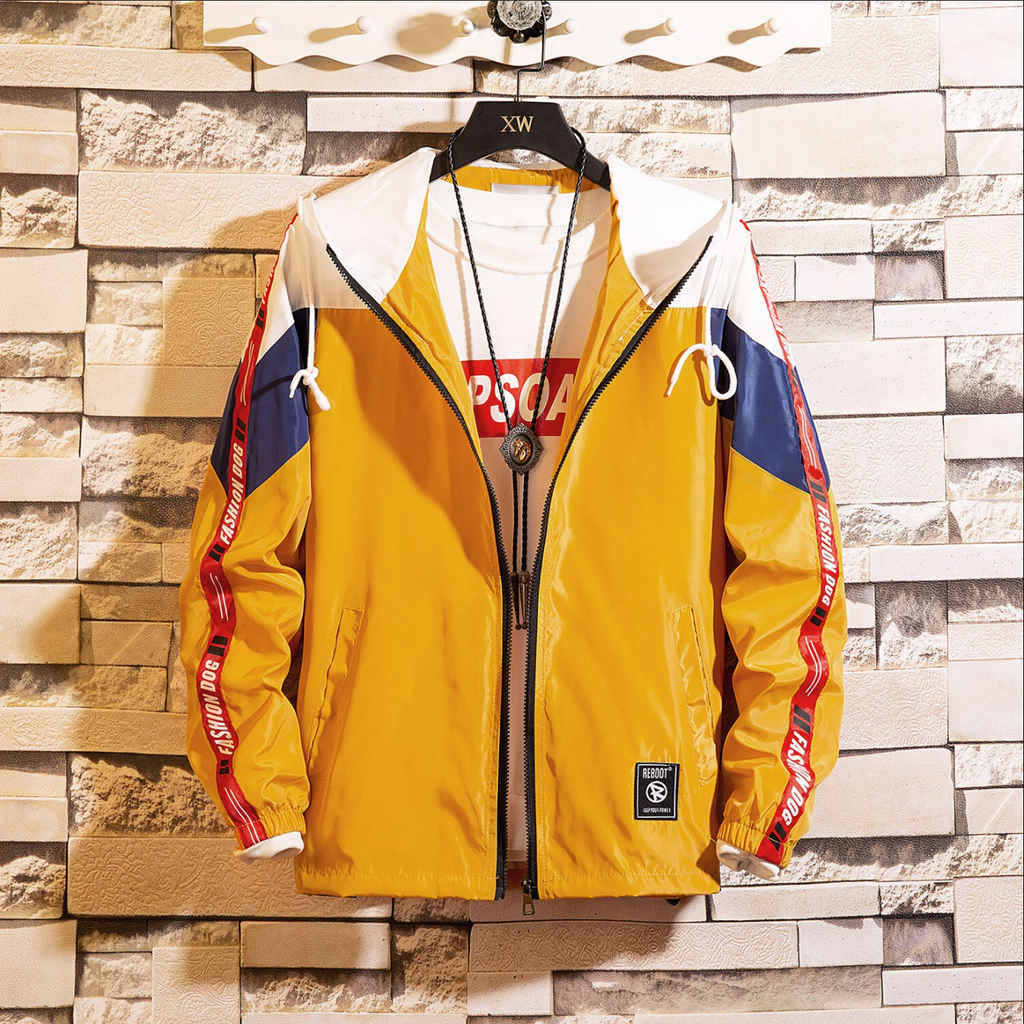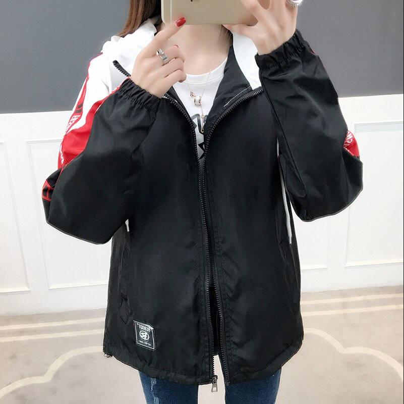 -Veste Coupe Vent à capuche Noir Blanc Rouge Streetwear
