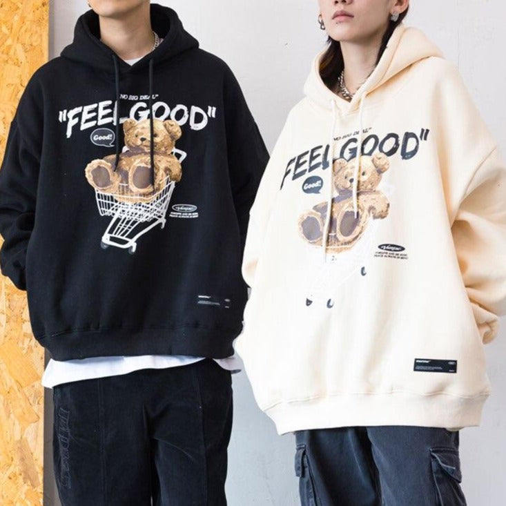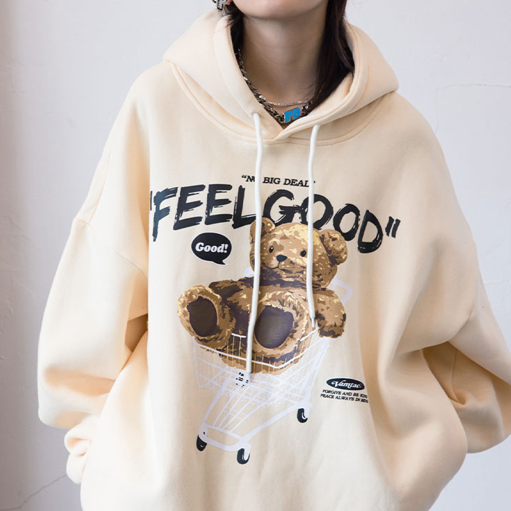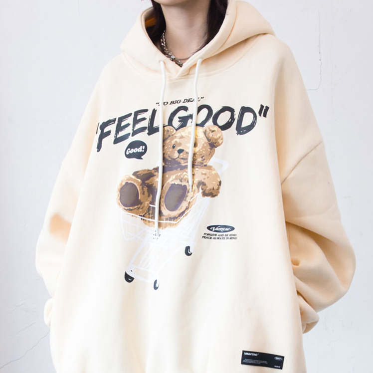 -Sweat-shirt Beige Hoodie à capuche Pull Imprimé Nounours Streetwear