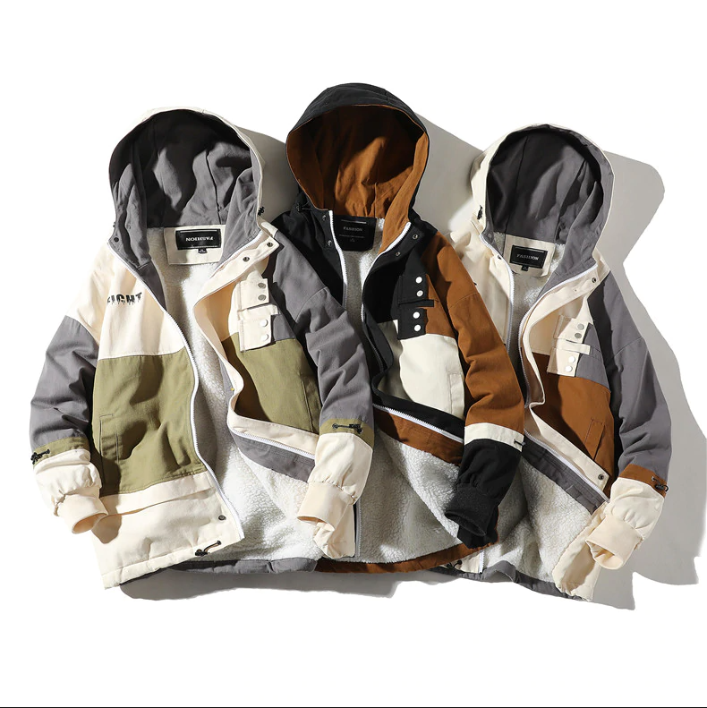 Blouson Veste Imitation peau de Mouton retourné Noir Marron Blanc à Capuche