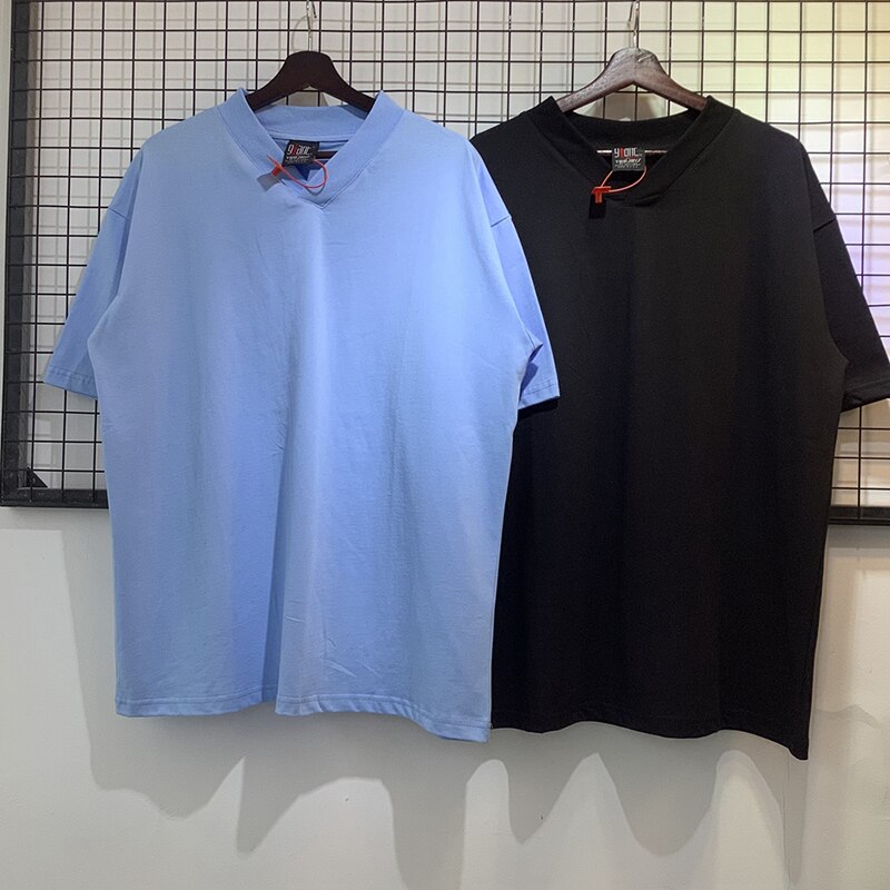 -T-shirt Oversize Streetwear Coupe large Col en V épais Bleu Ciel