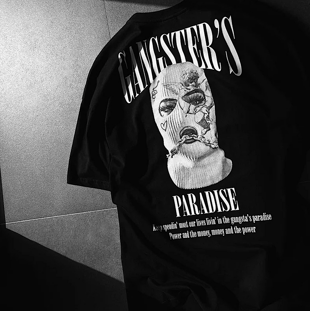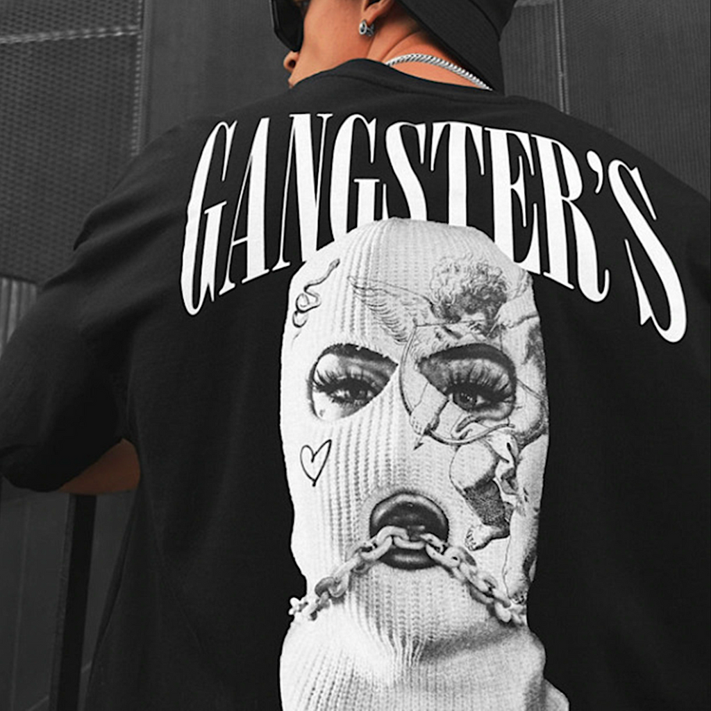 "GANGSTER'S PARADISE" T-shirt Noir Oversize Imprimé Streetwear - URB1™