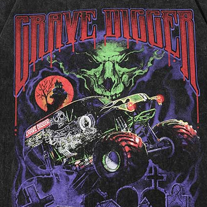 "GRAVE DIGGER" T-shirt Noir Oversize Imprimé - URB1™