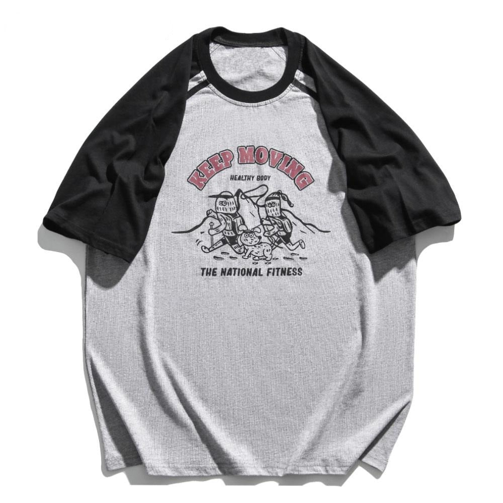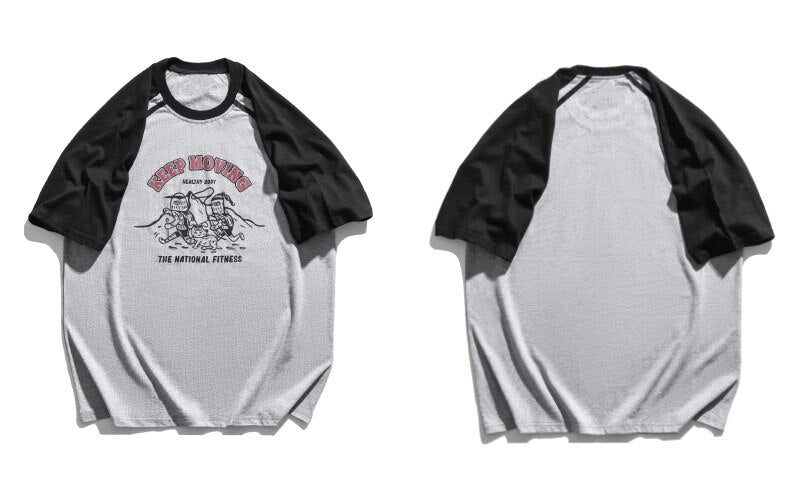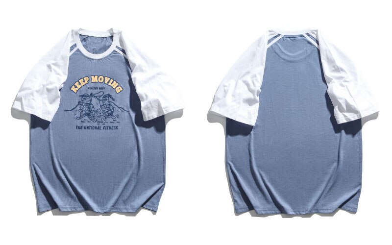"KEEP MOVING" T-shirt raglan Bleu Blanc - URB1™