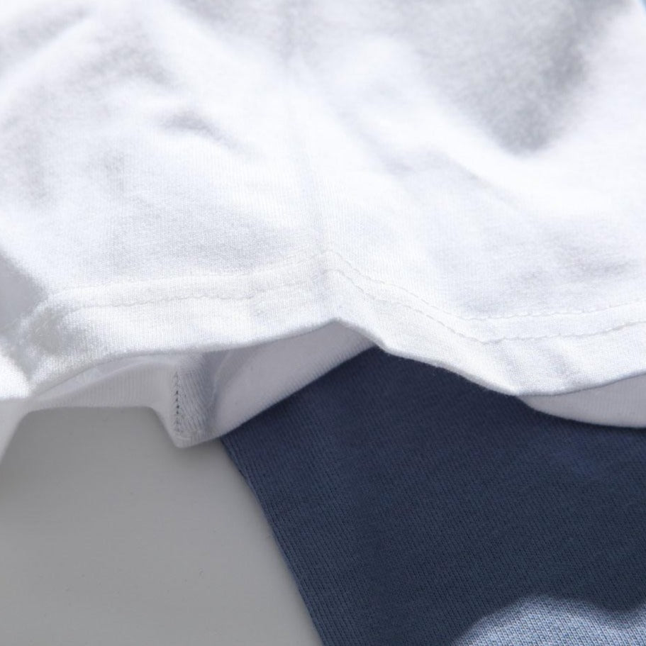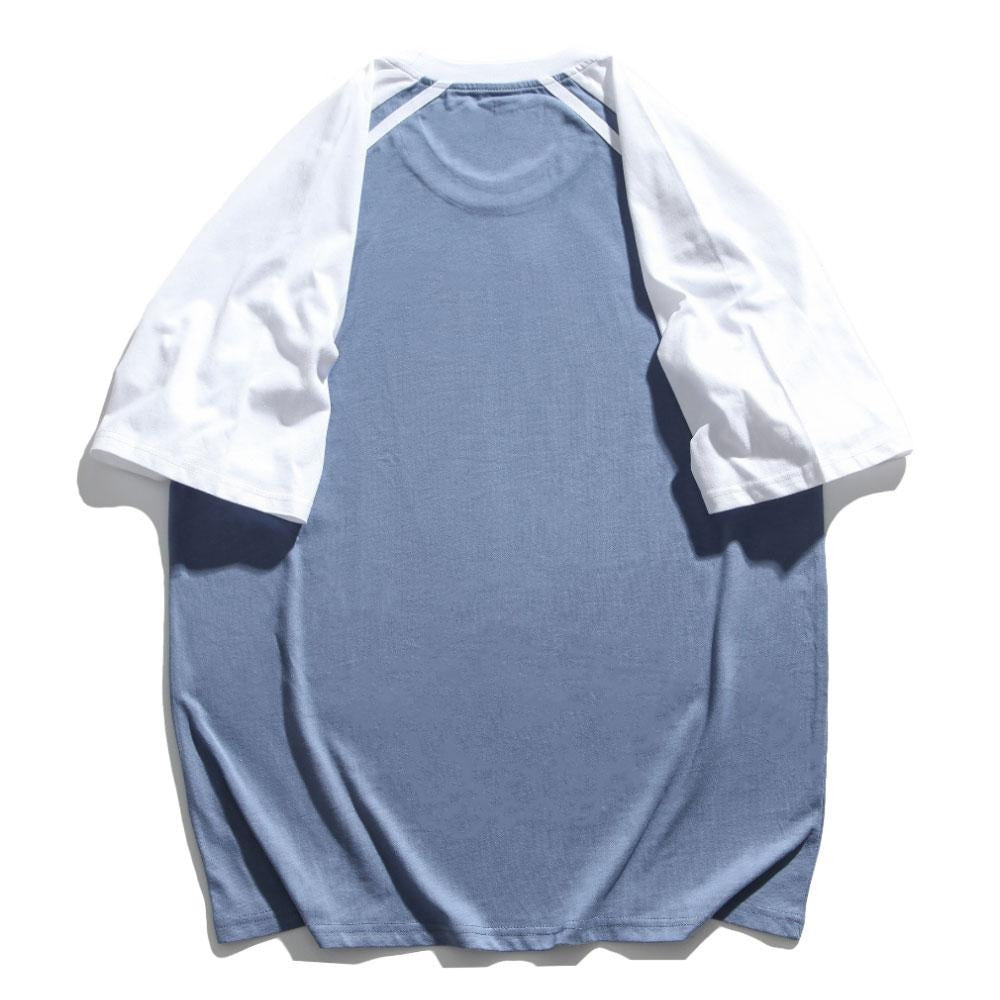 -T-shirt Raglan Bleu Blanc Oversize Imprimé Streetwear