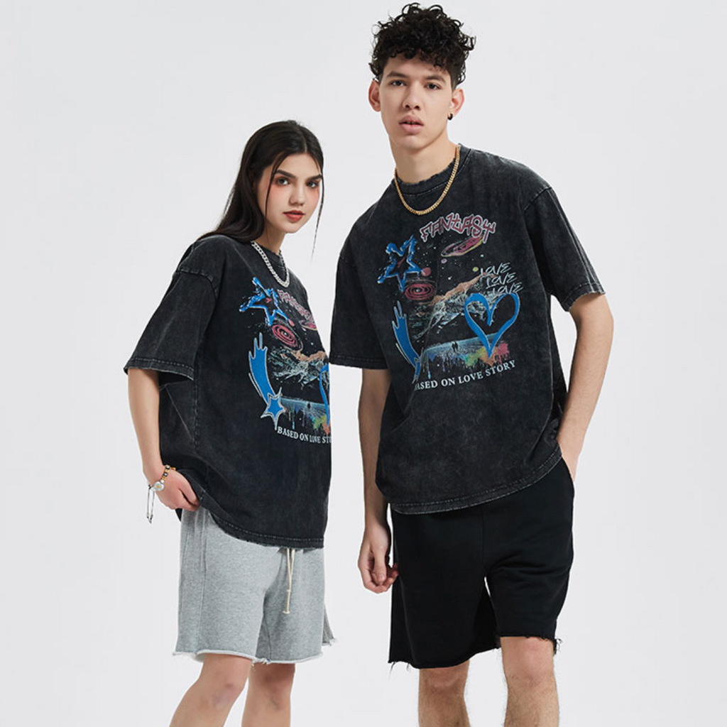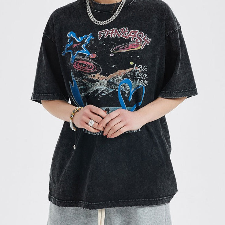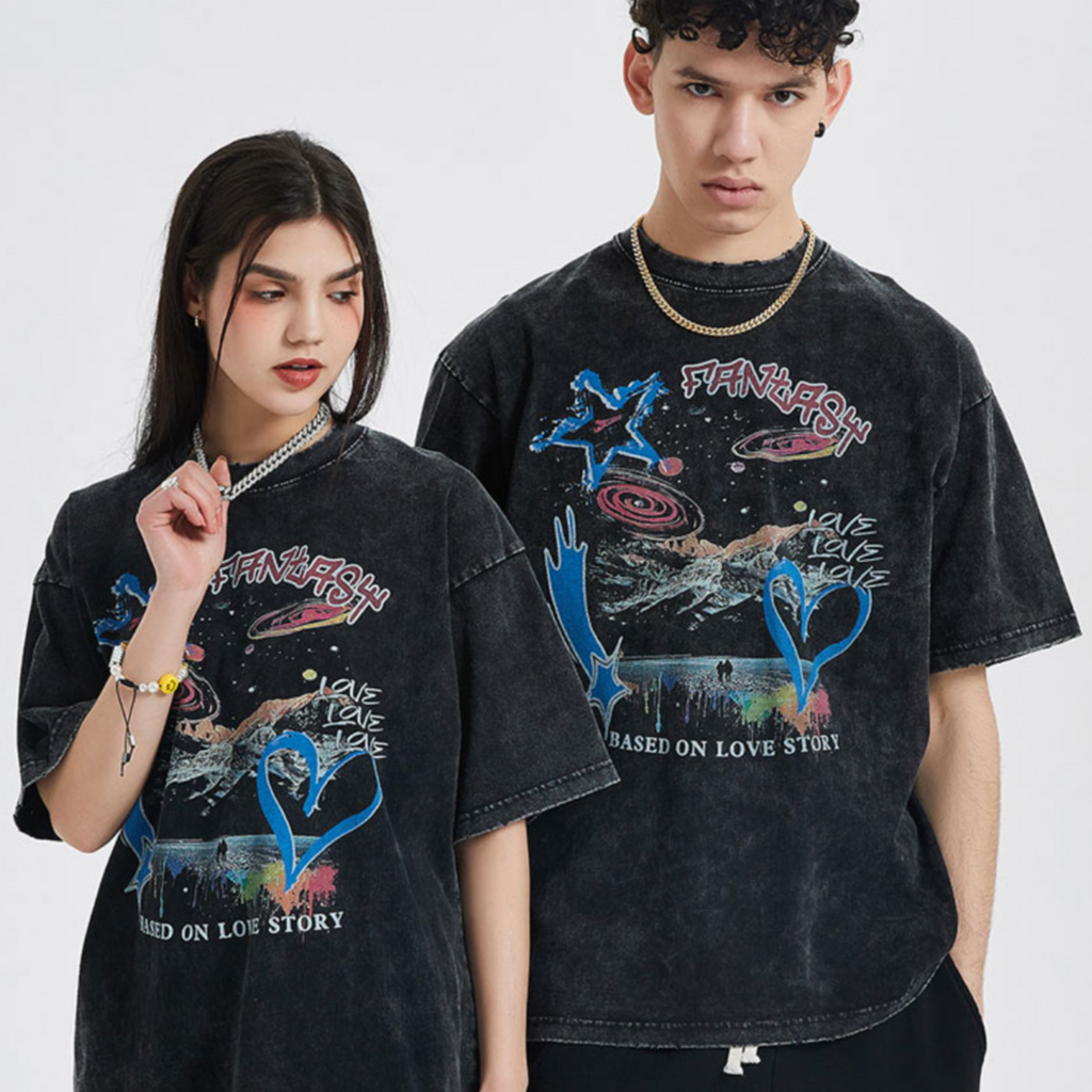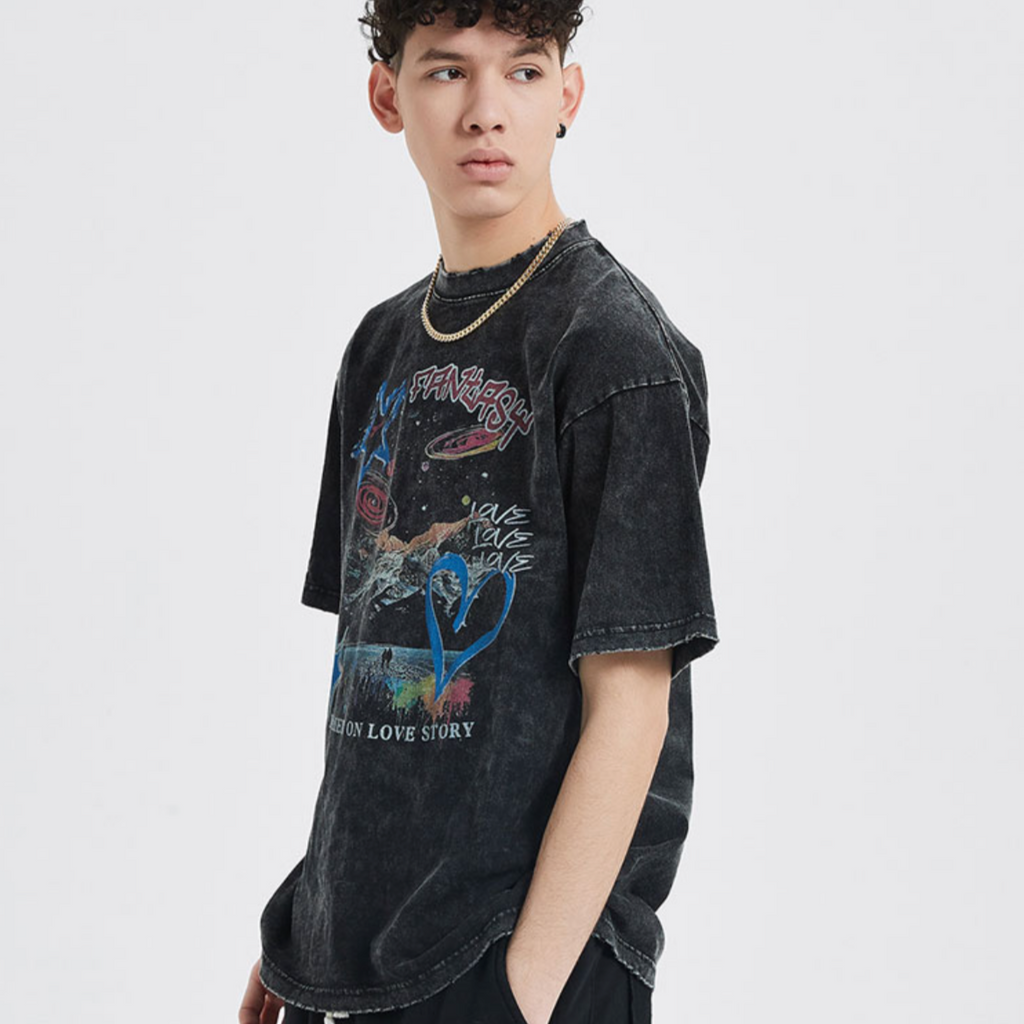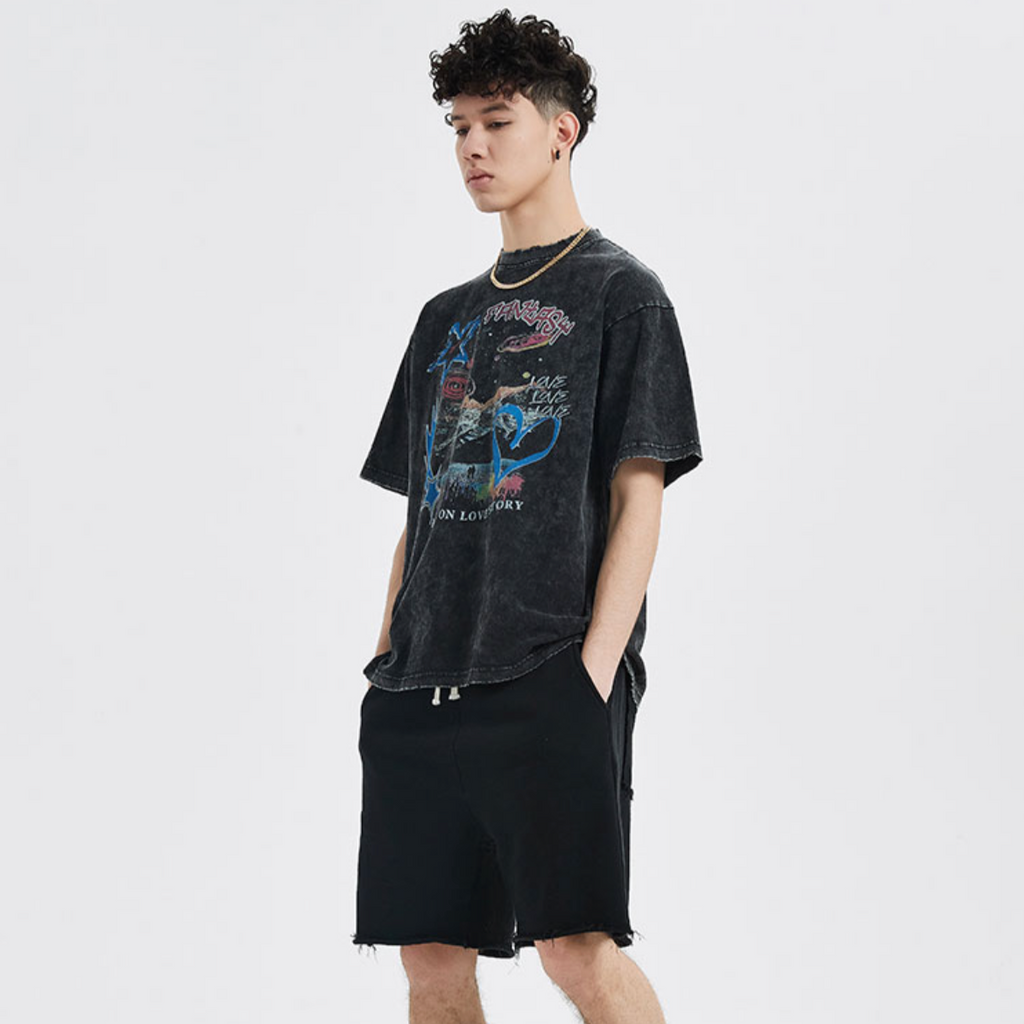 "LOVE" T-shirt Délavé Imprimé Retro Streetwear - URB1™