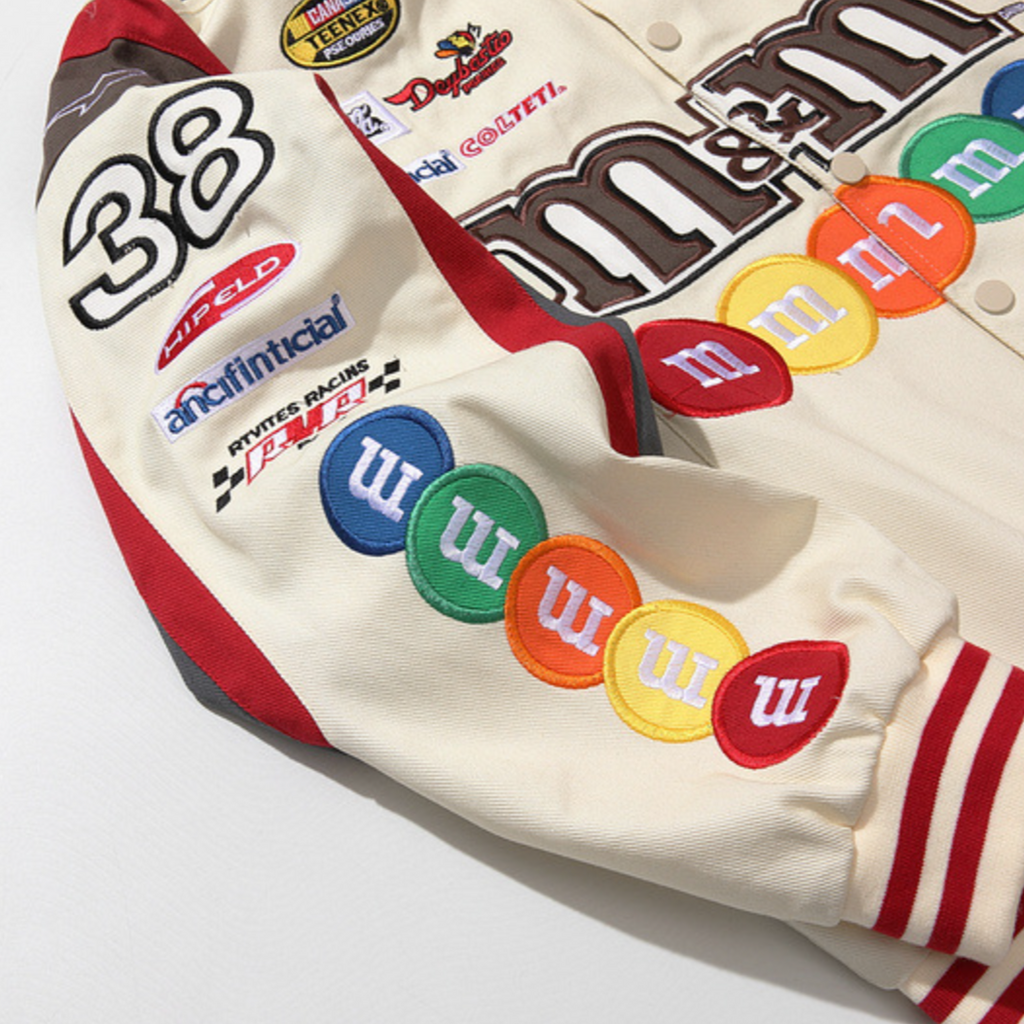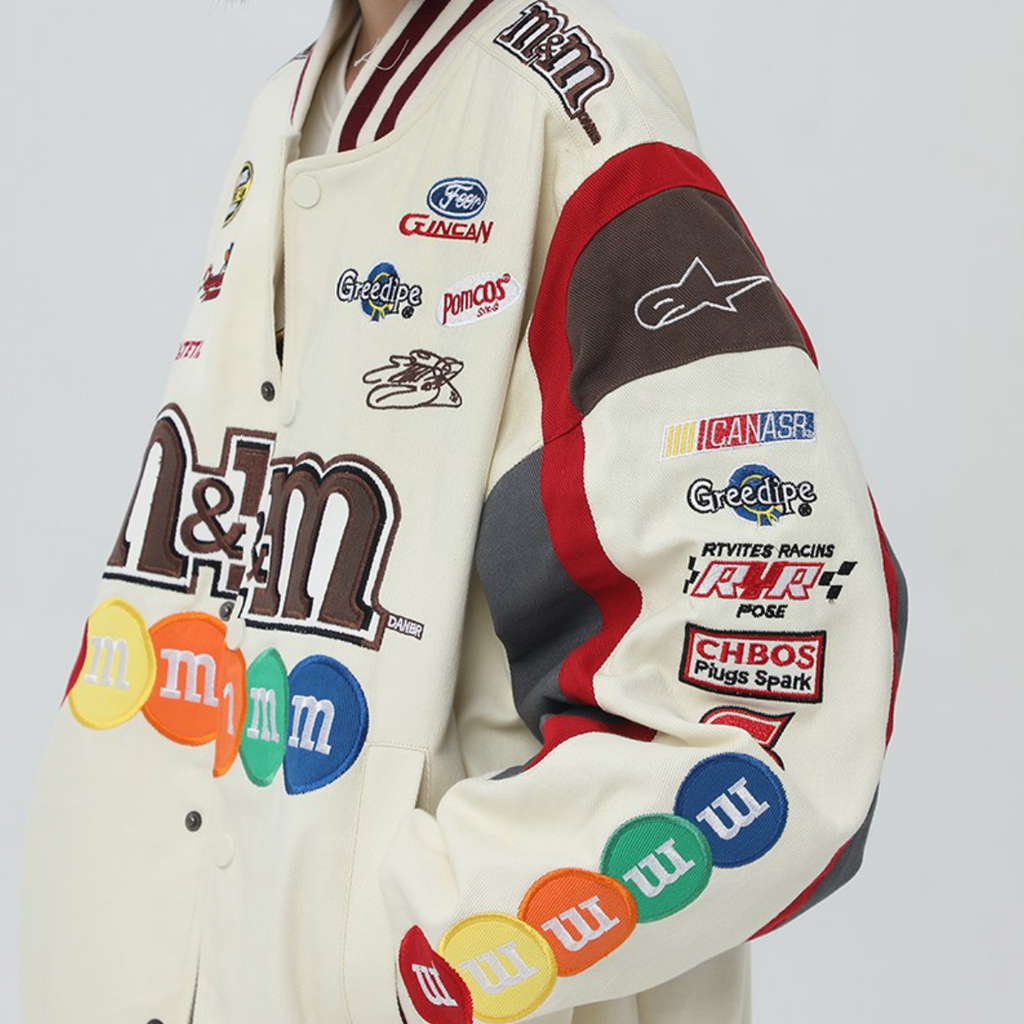 "M&M" Veste Universitaire Jacket Racing Brodée Beige - URB1™
