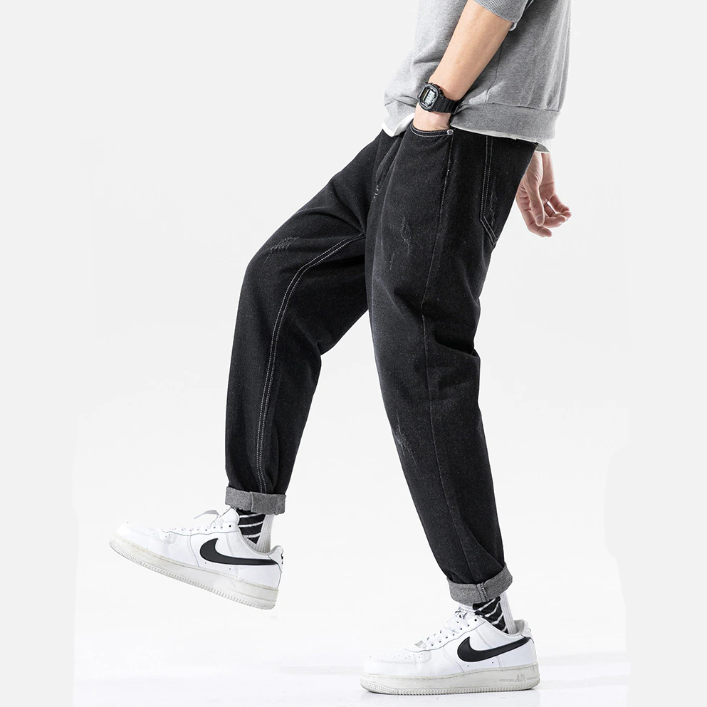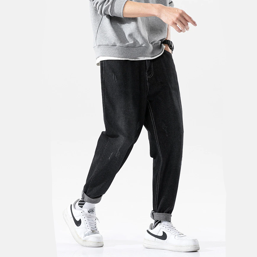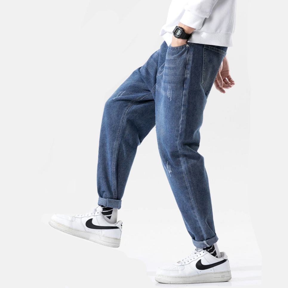 "STRCH" Pantalon Jean Large Denim Coupe Droite Bleu - URB1™