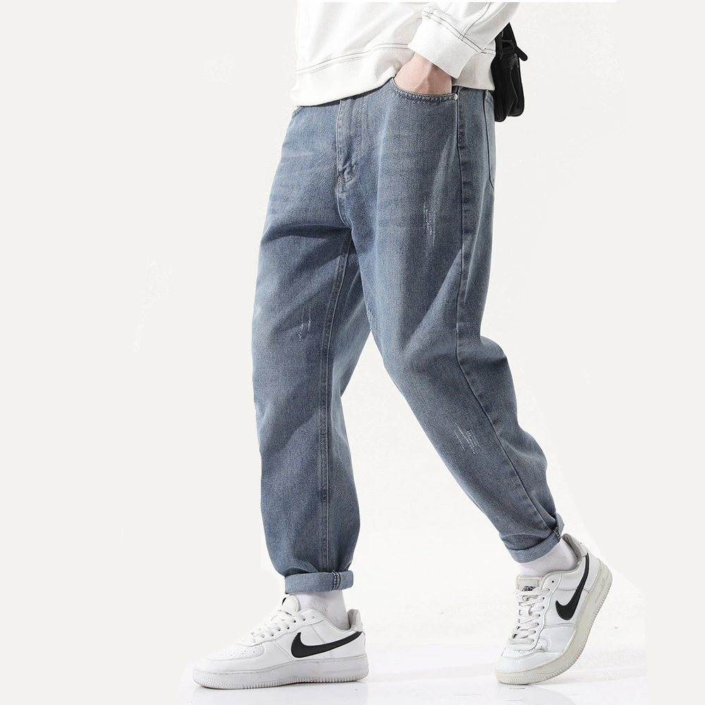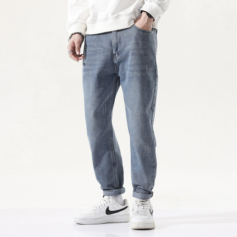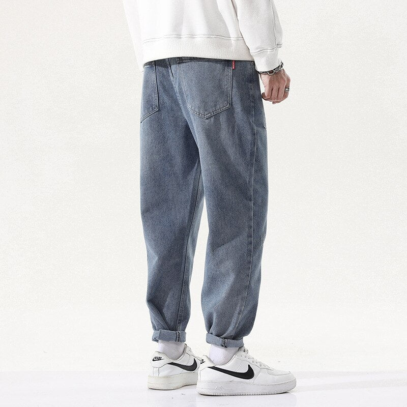 -Jean Large Denim Coupe Droite Bleu Streetwear