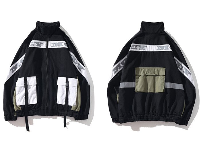 -Veste Coupe Vent Noir Blanc Vert Sans capuche Streetwear