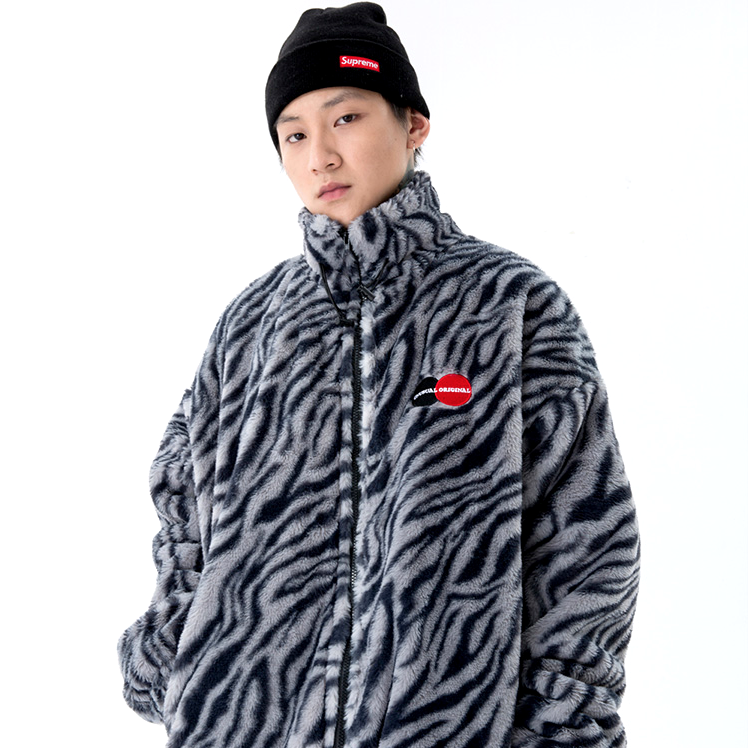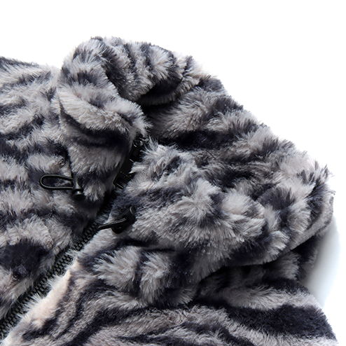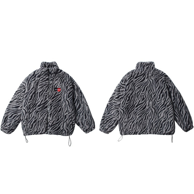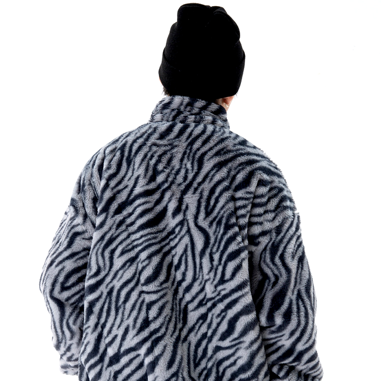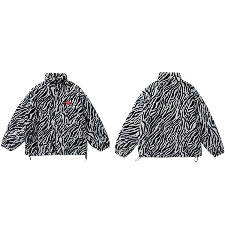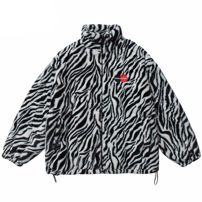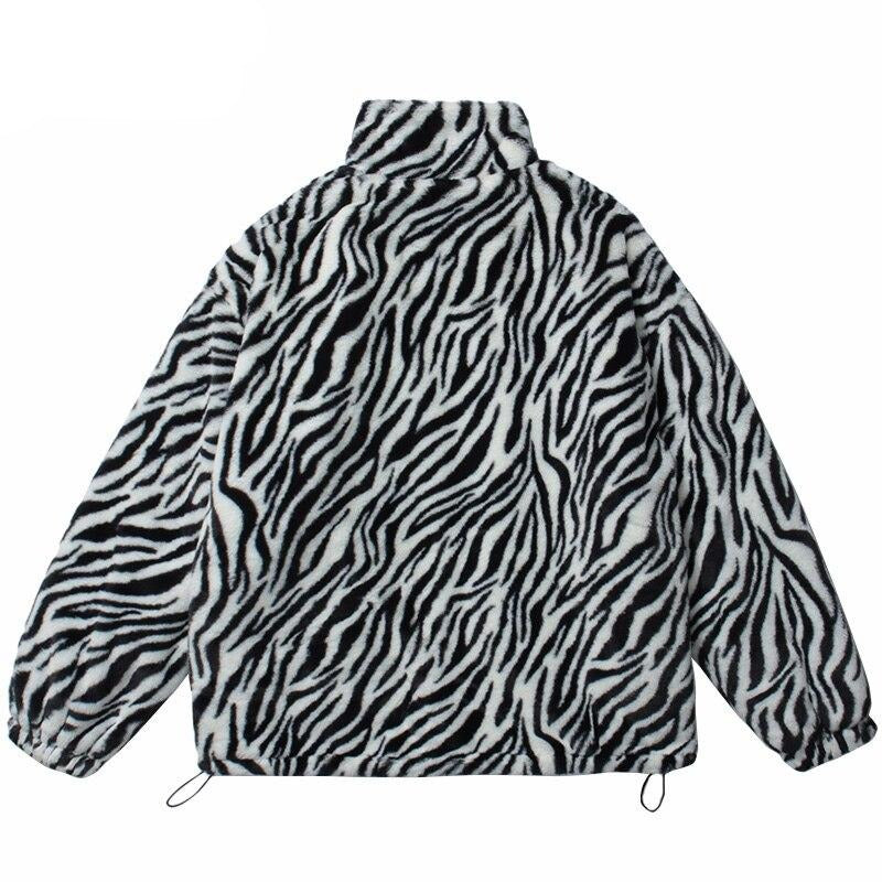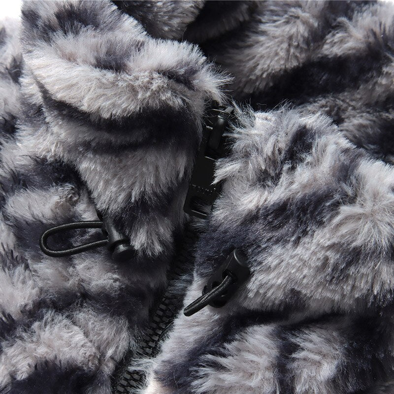 -Pull Gilet à Zip Fourrure Zébré Noir Molletonné Oversize Streetwear