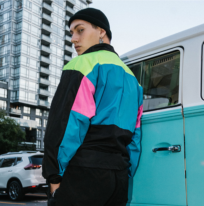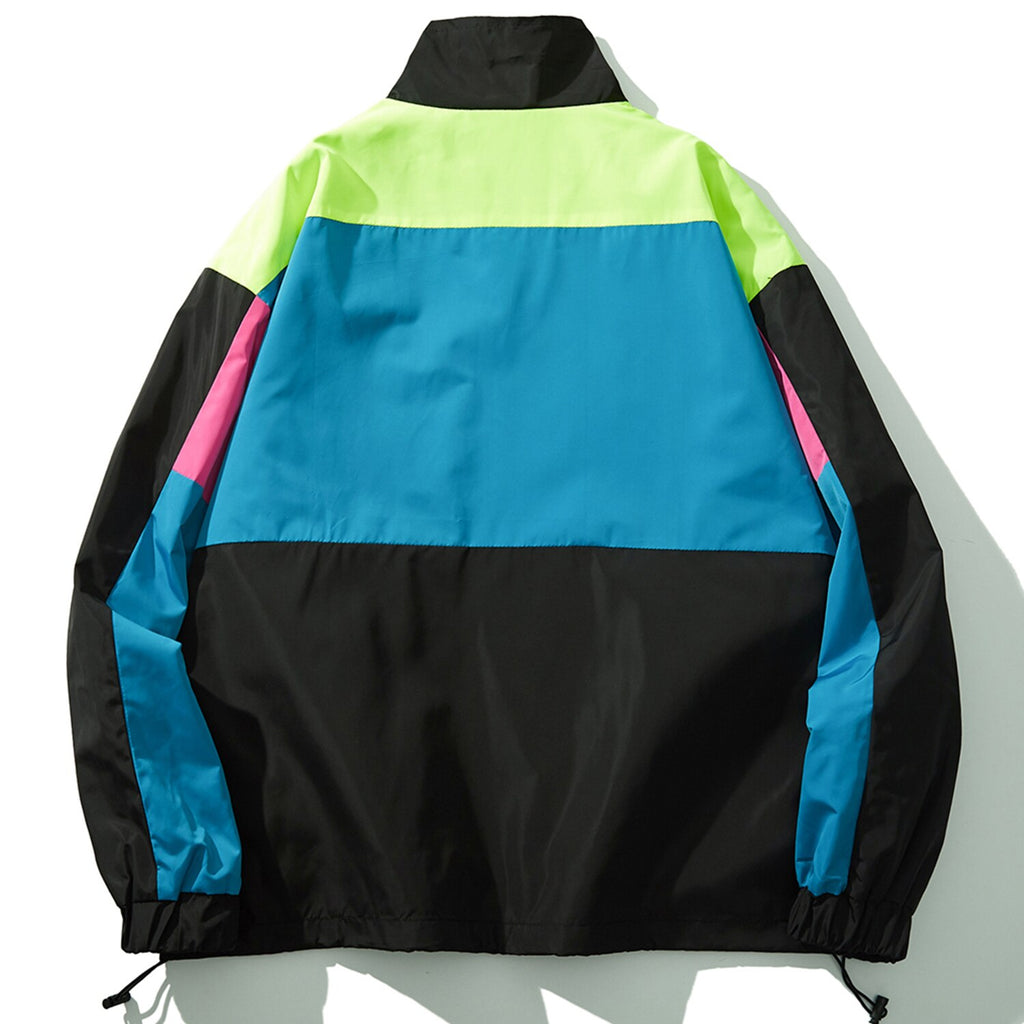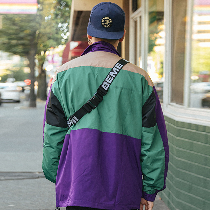 "OXAO" Veste Coupe Vent Vert Violet Rétro Streetwear - URB1™