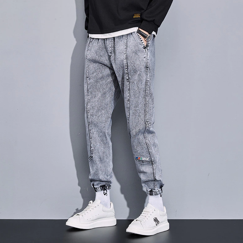-Jogg Jean à Elastique à la Taille et aux chevilles Streetwear