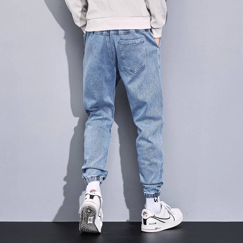 -Jogg Jean à Elastique à la Taille et aux chevilles Streetwear