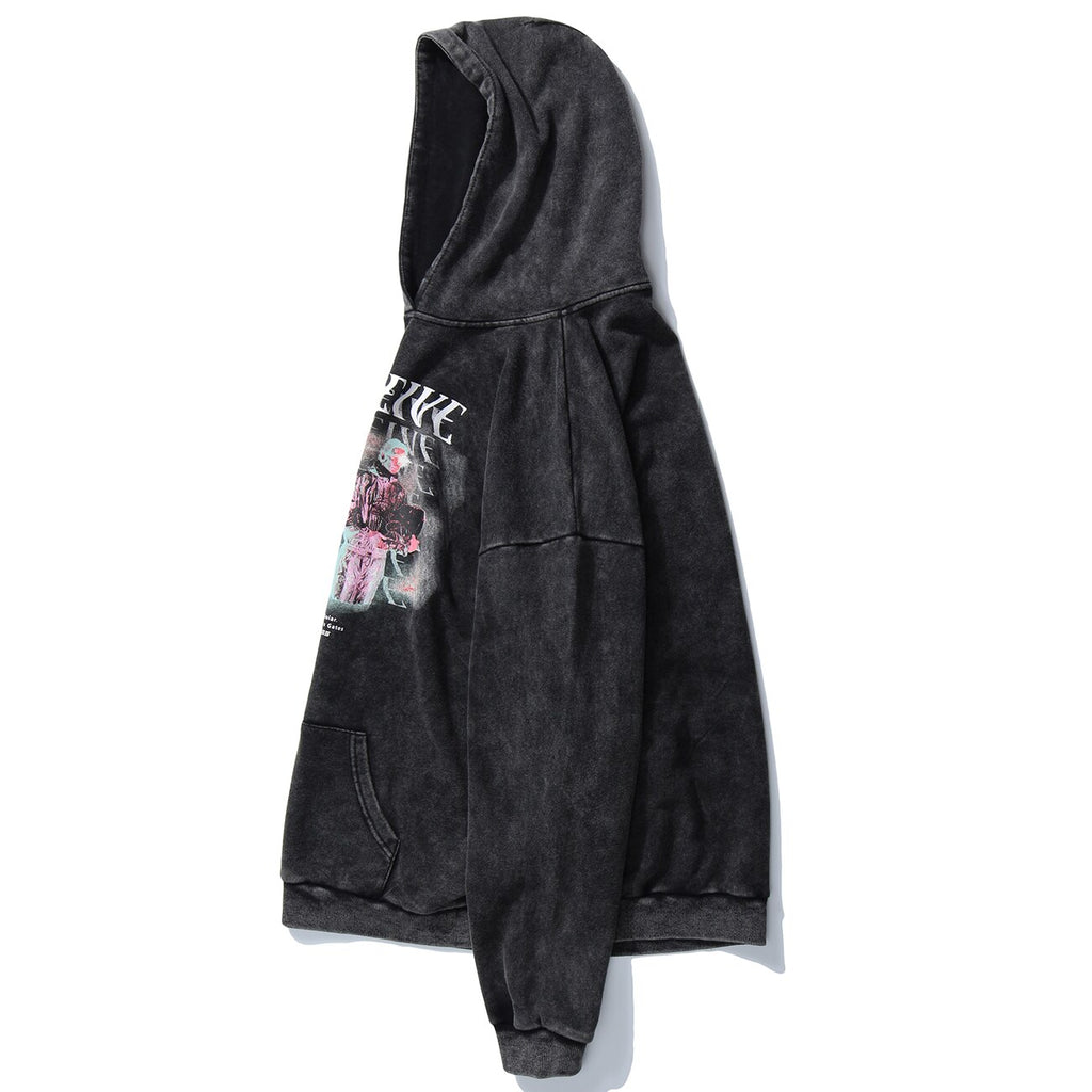 -Sweat-shirt Hoodie à capuche Imprimé Oversize Noir Patiné