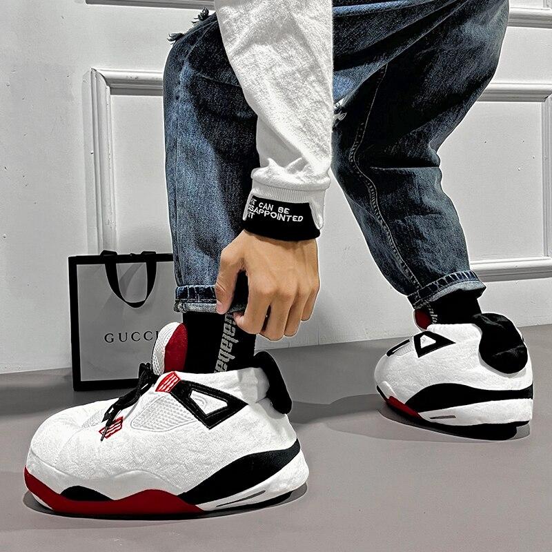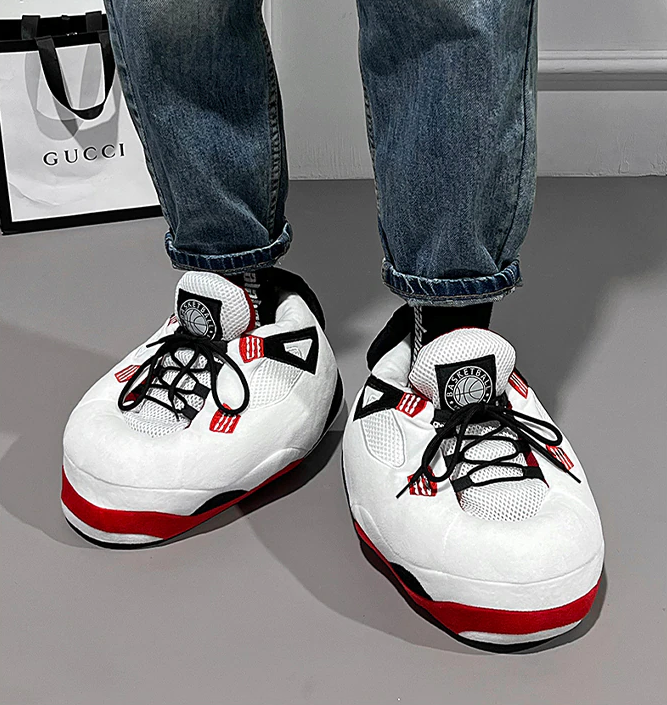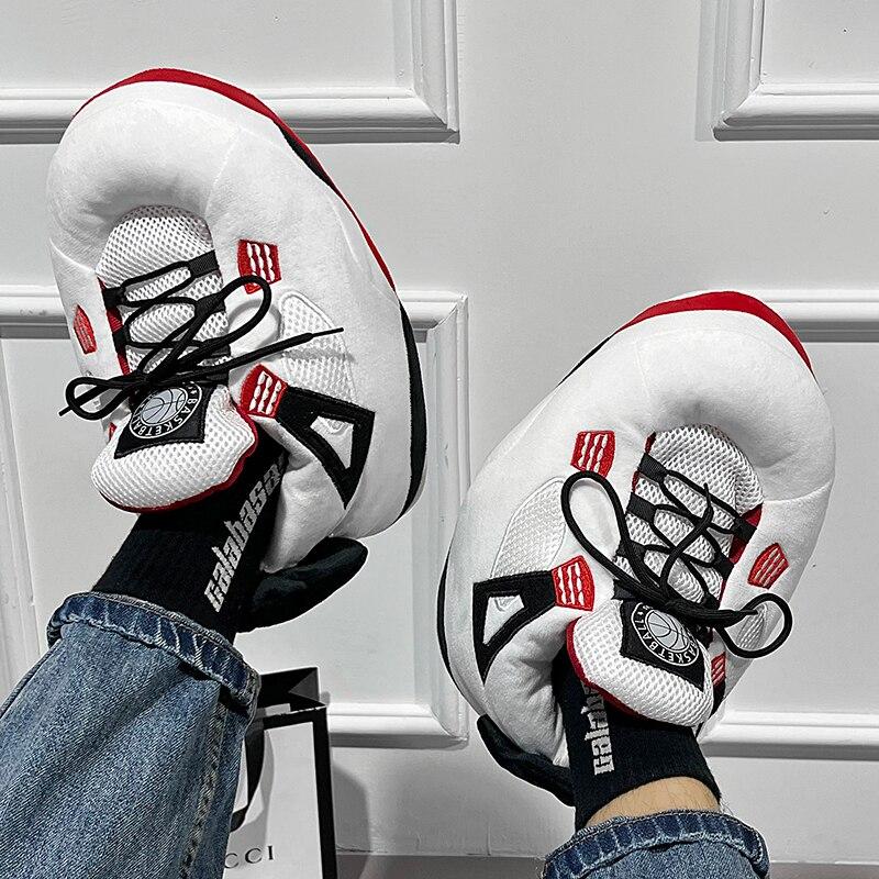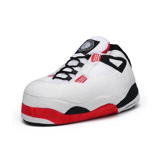 -Chaussons Sneakers Pantoufles Basket Streetwear "RED FIRE" Blanc